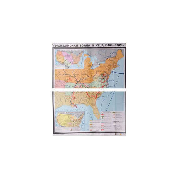 Описание Учебная карта "Гражданская война в США в 1861 - 1865 гг." (матовое, 2-стороннее лам.)