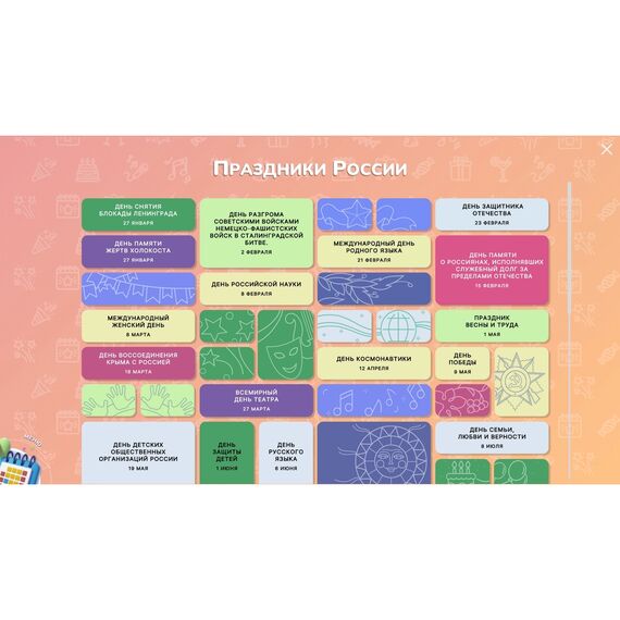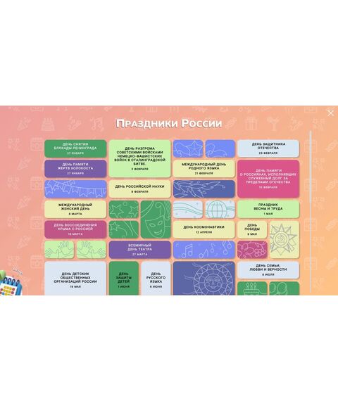 Календарь. Панель с универсальной календарной сеткой и набором магнитных карточек.