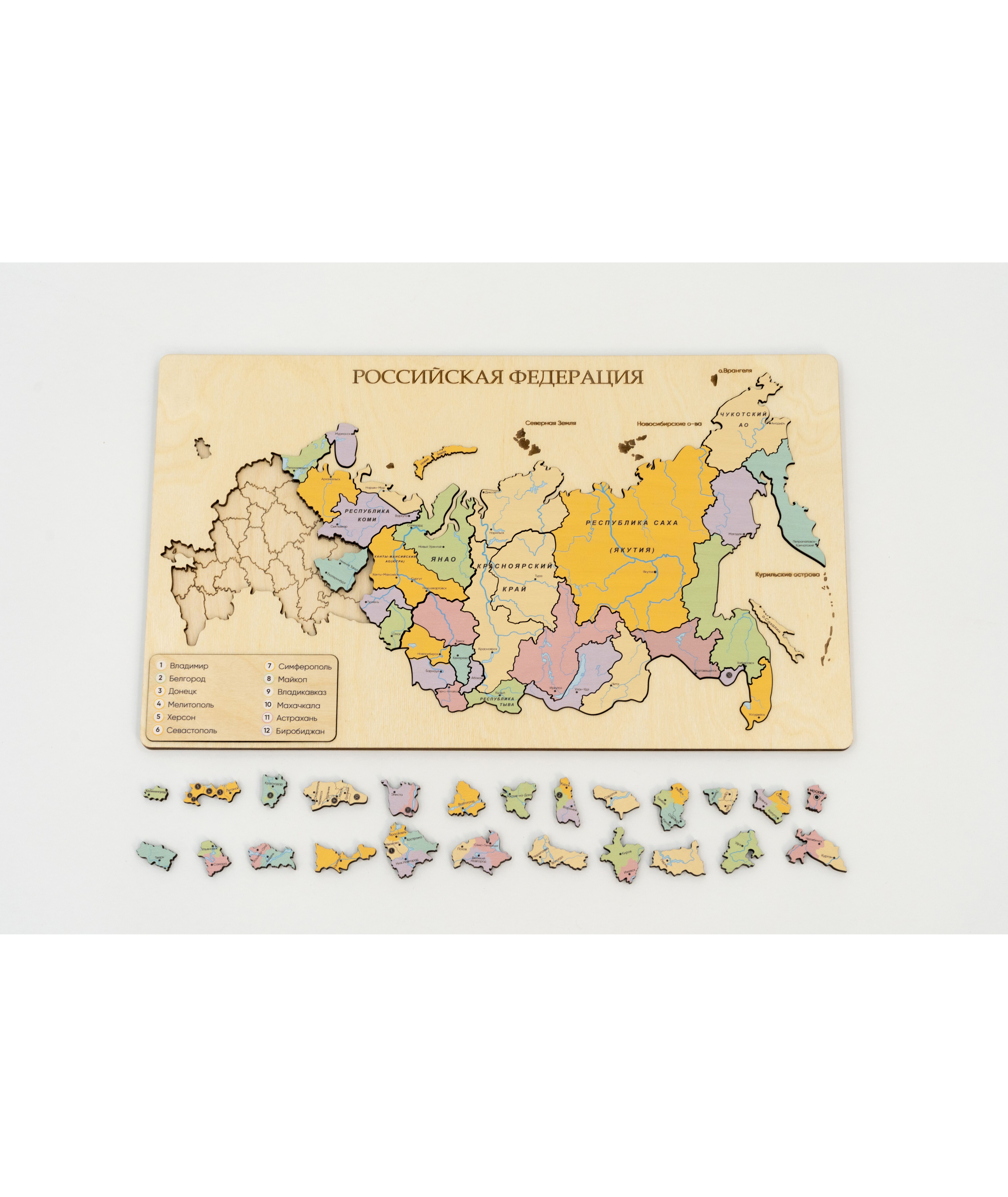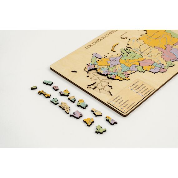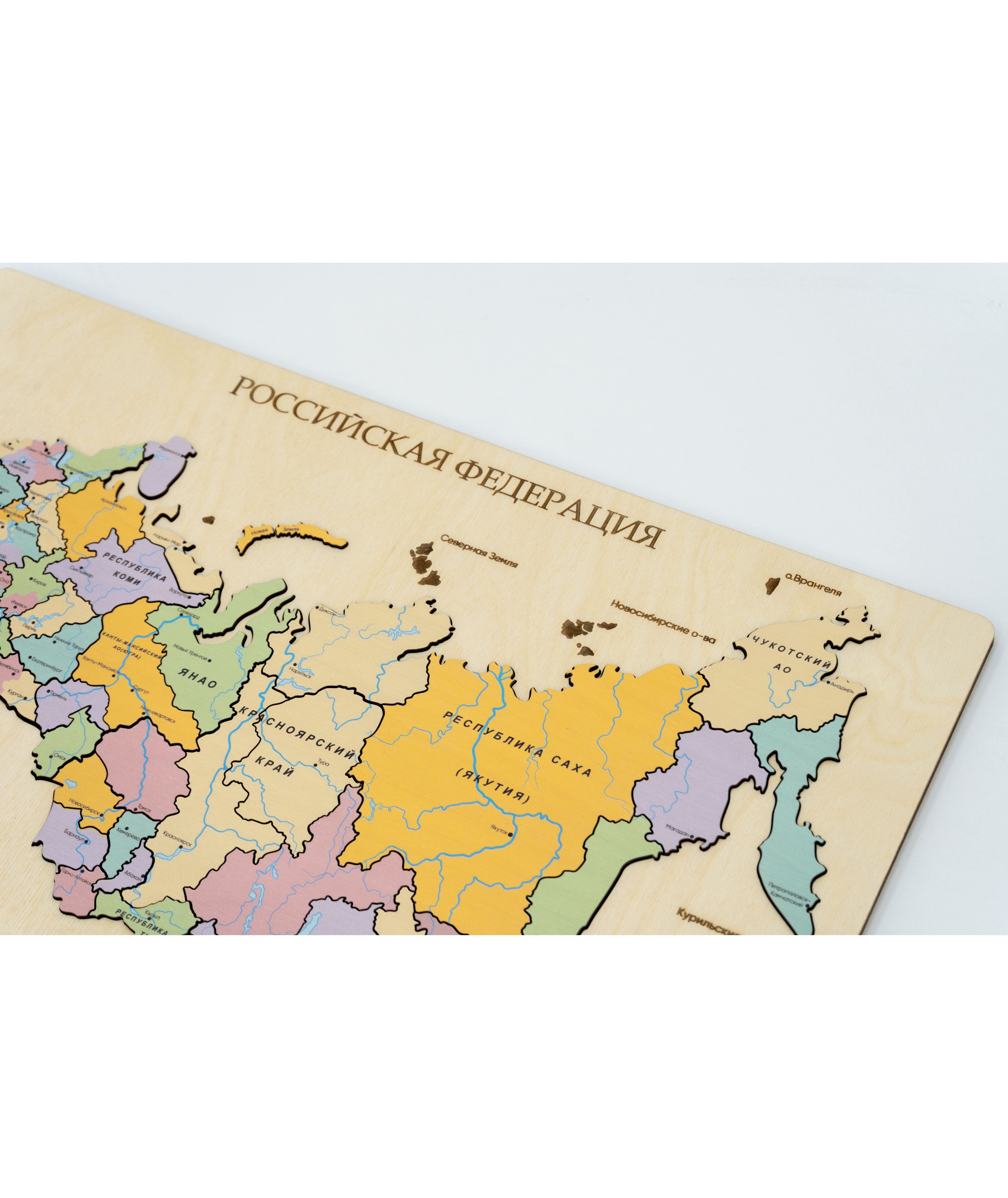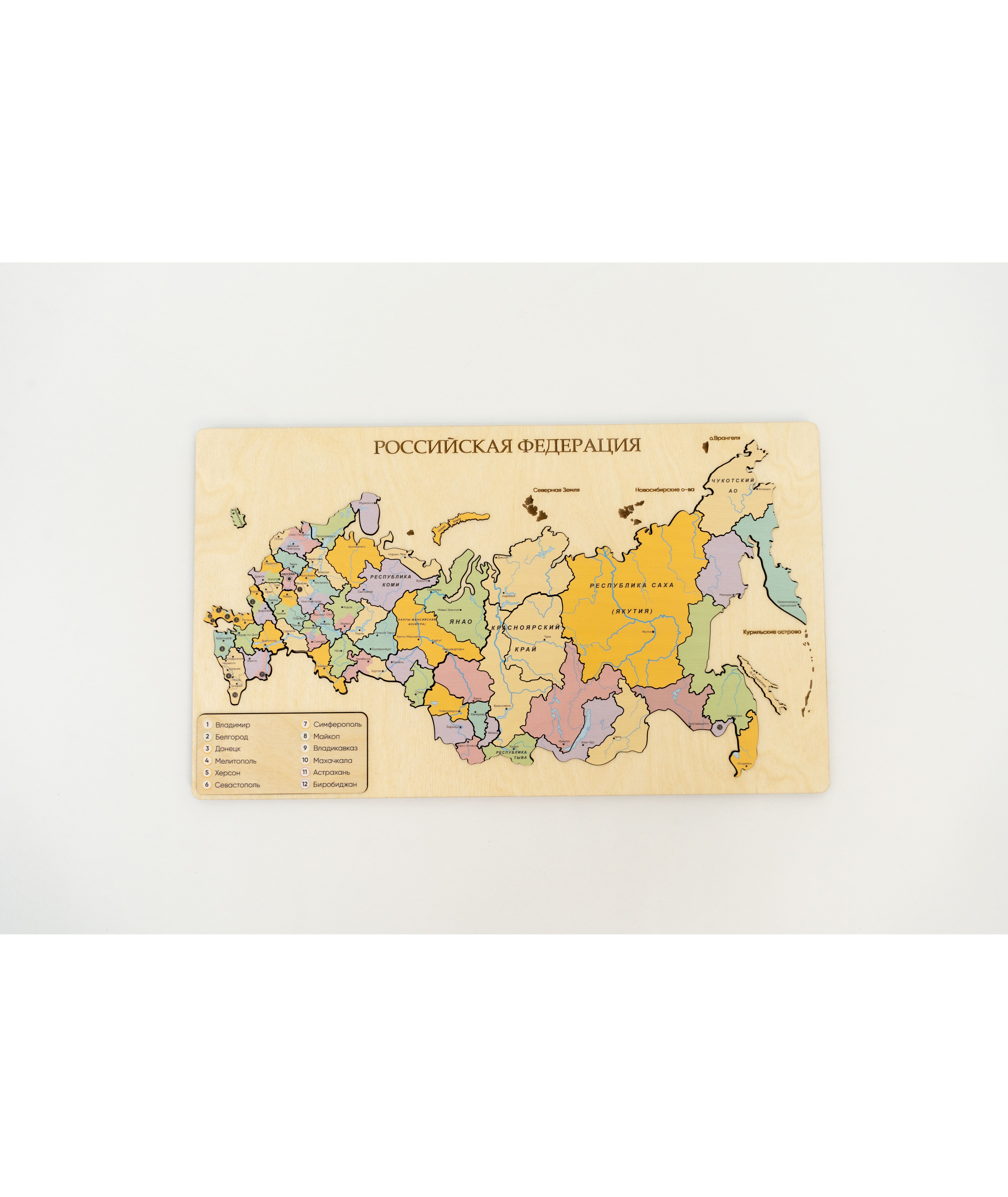 Карта-пазл административно-территориального деления России. Играя с картой и складывая фрагменты пазла, дети запоминают важную информацию про территориальное устройство своей страны, что делает карту-пазл незаменимым ресурсом для географических и патриотических уроков. Образовательная карта-пазл идеально подходит для использования в школьных классах и других образовательных учреждениях.