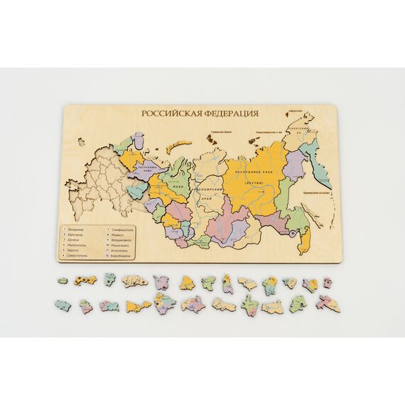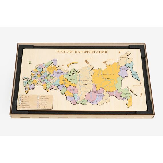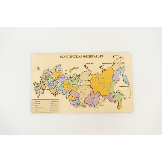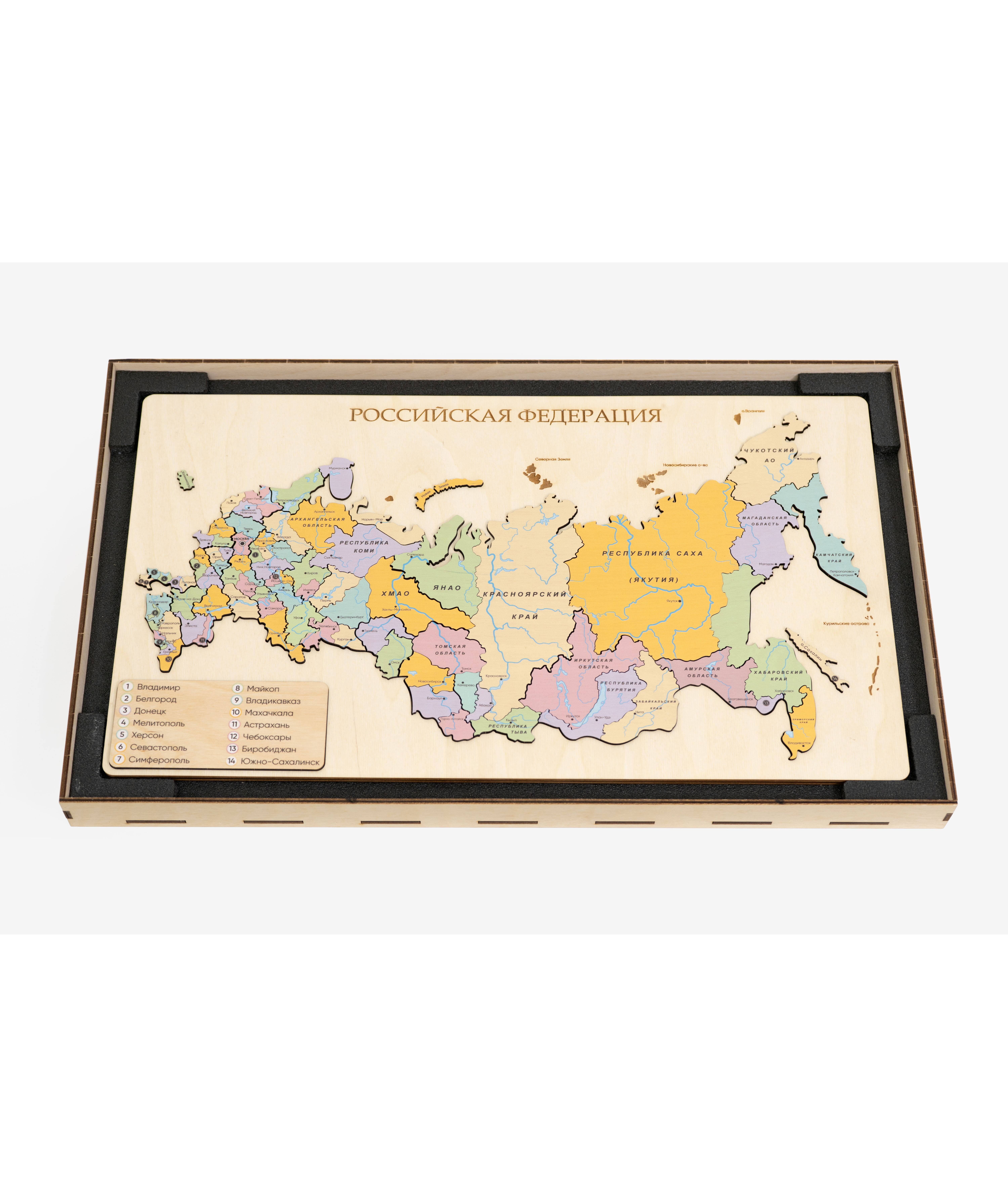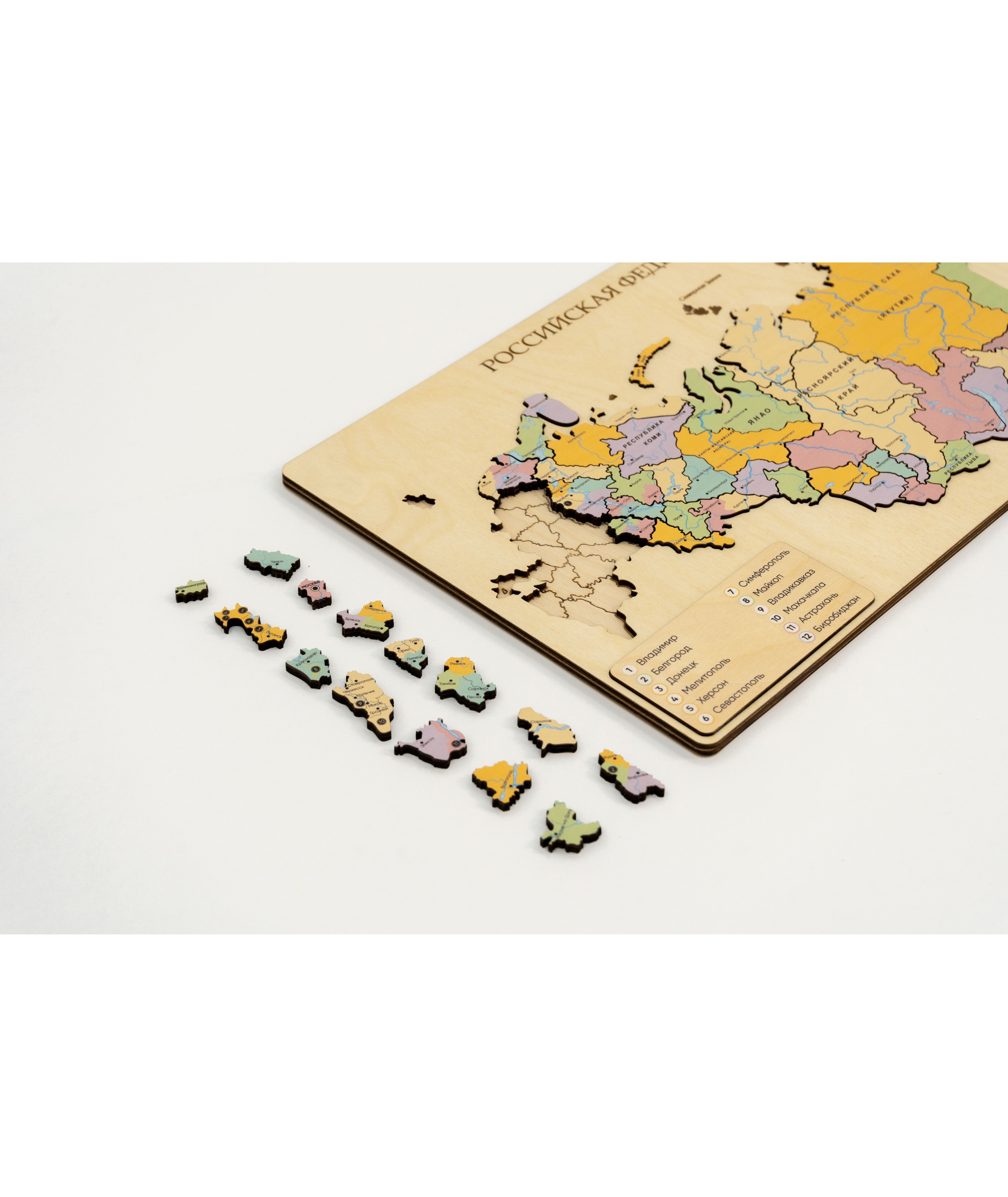 Карта-пазл административно-территориального деления России. Играя с картой и складывая фрагменты пазла, дети запоминают важную информацию про территориальное устройство своей страны, что делает карту-пазл незаменимым ресурсом для географических и патриотических уроков. Образовательная карта-пазл идеально подходит для использования в школьных классах и других образовательных учреждениях.