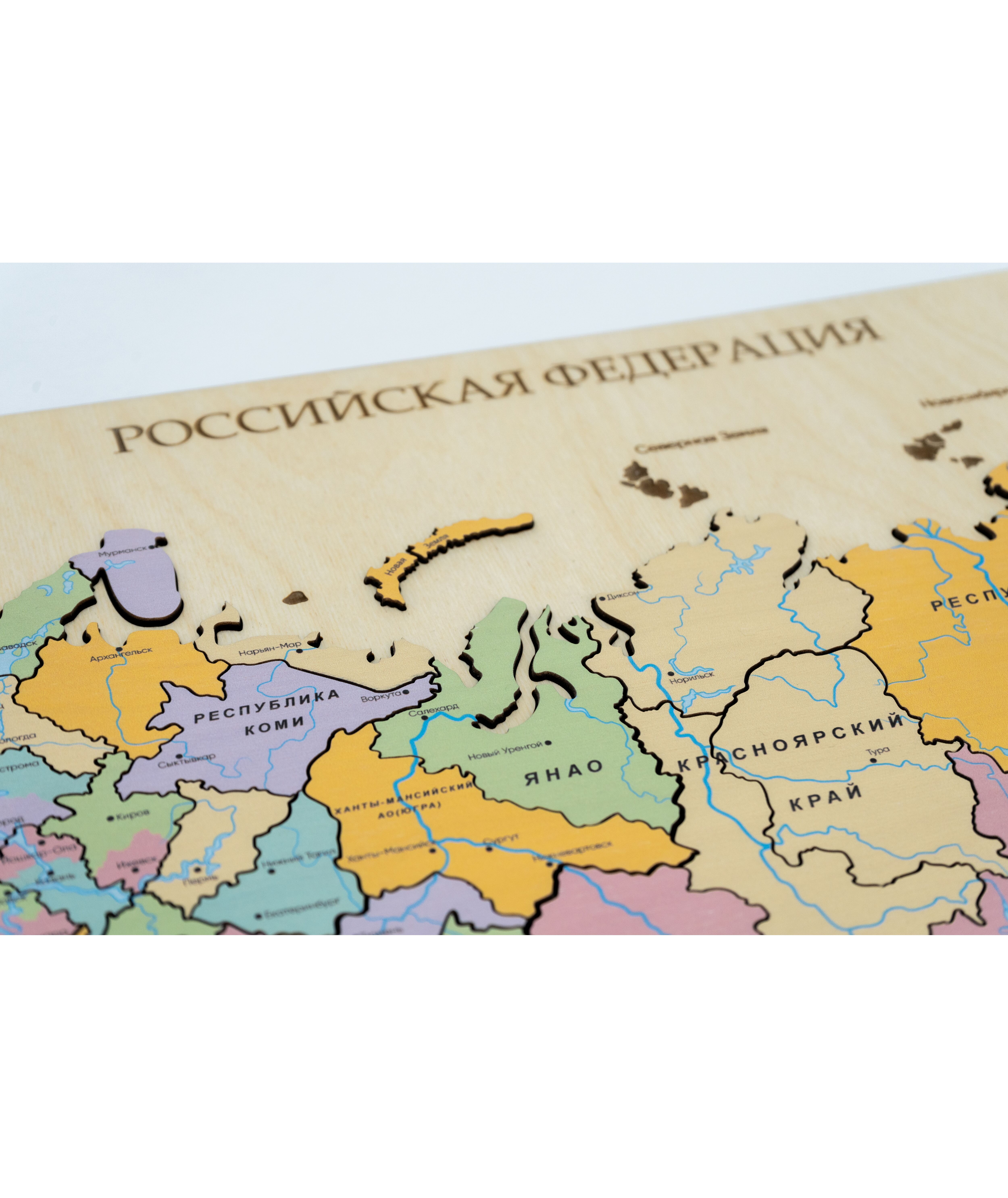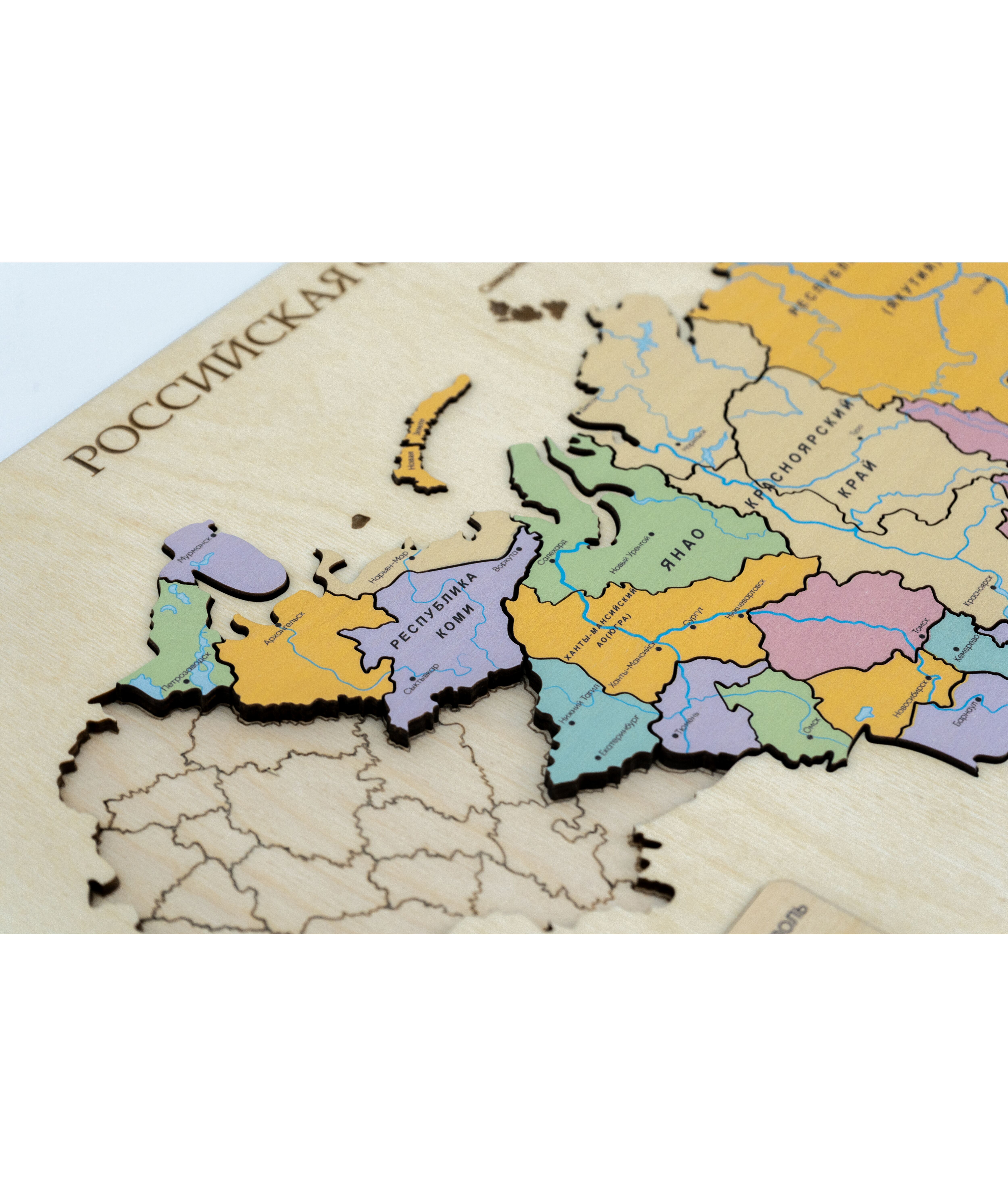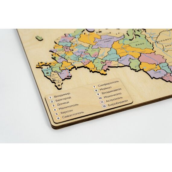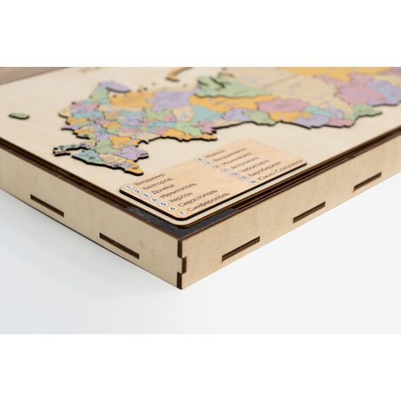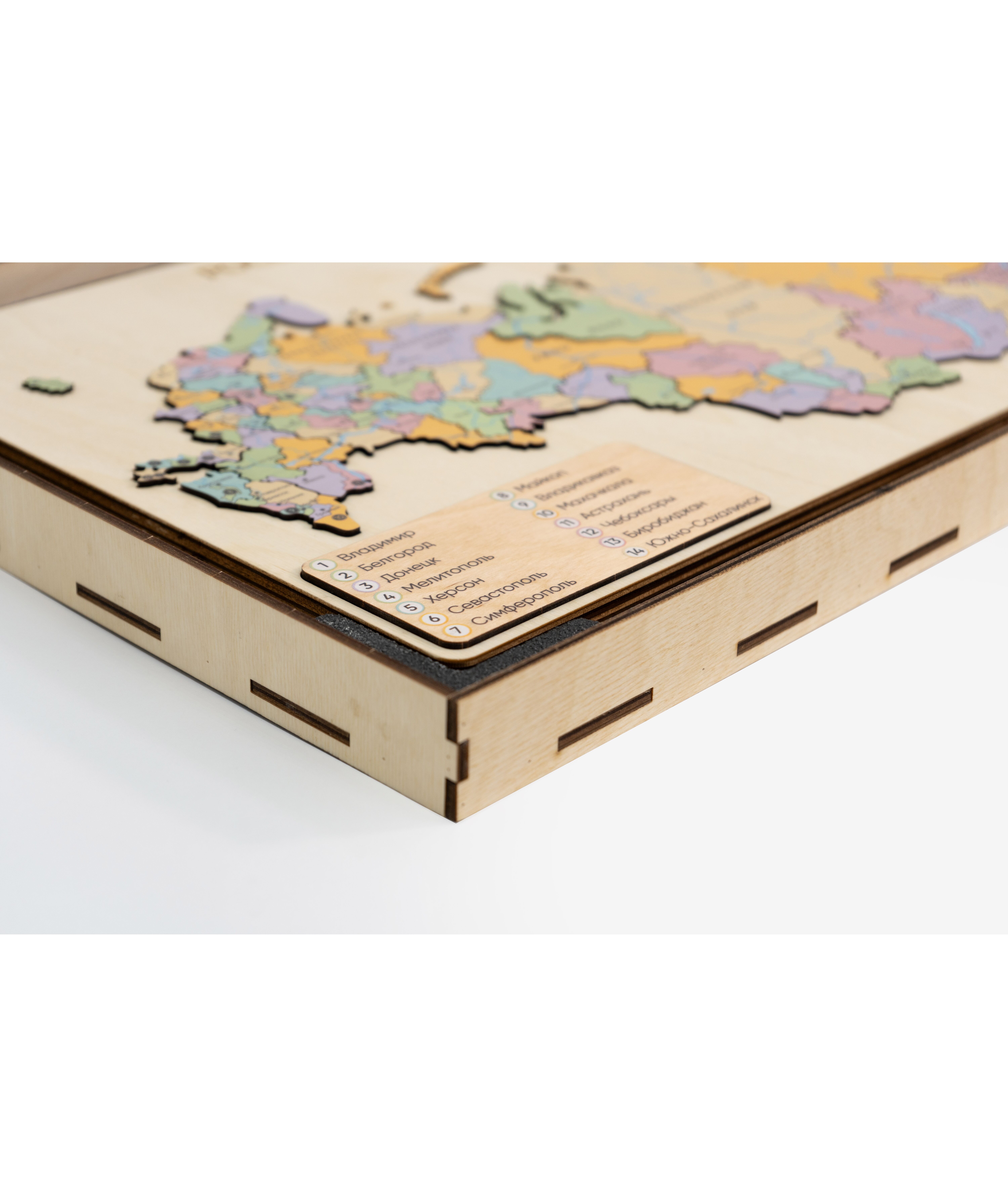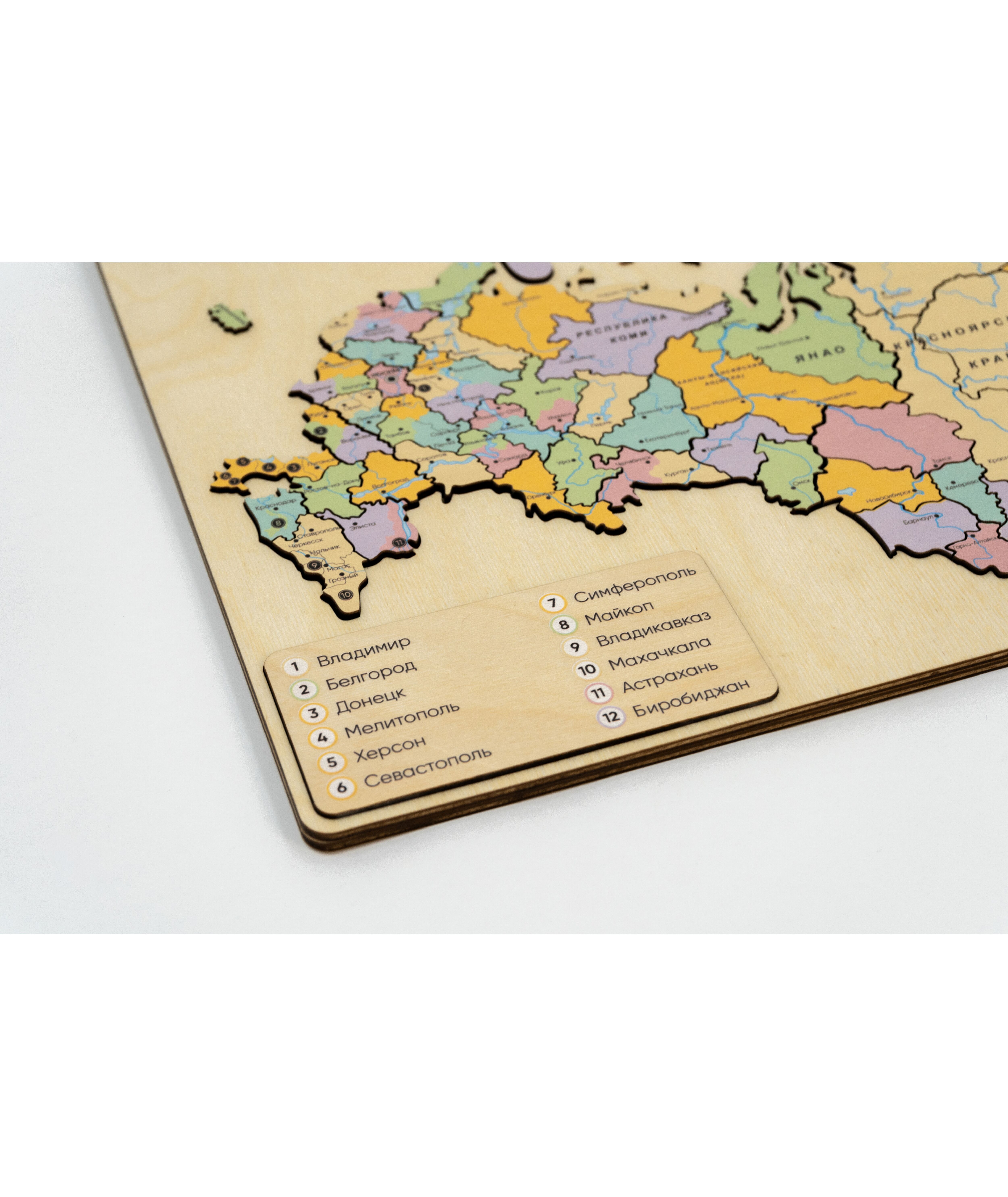 Карта изготовлена из экологичной берёзовой фанеры, все её контуры и фрагменты тщательно отшлифованы. Специальная UF-печать обеспечивает стойкость красок к выцветанию, сохраняя яркость и чёткость изображений на протяжении длительного времени.