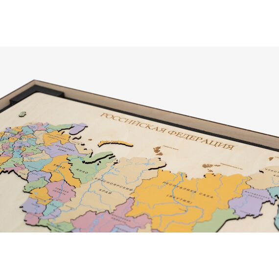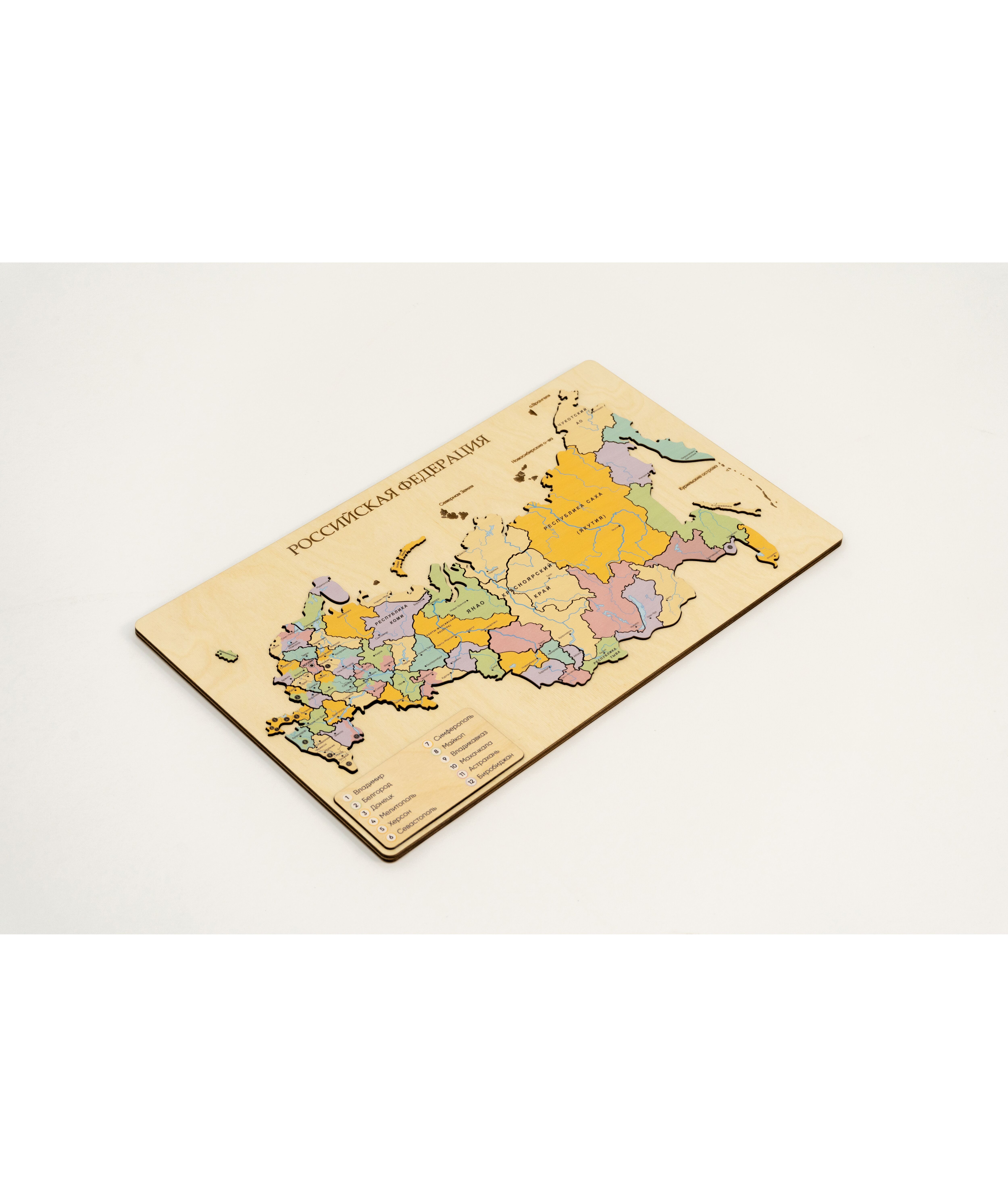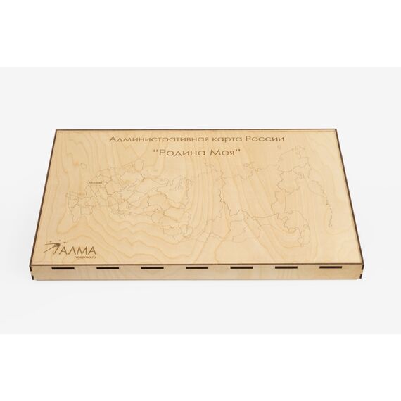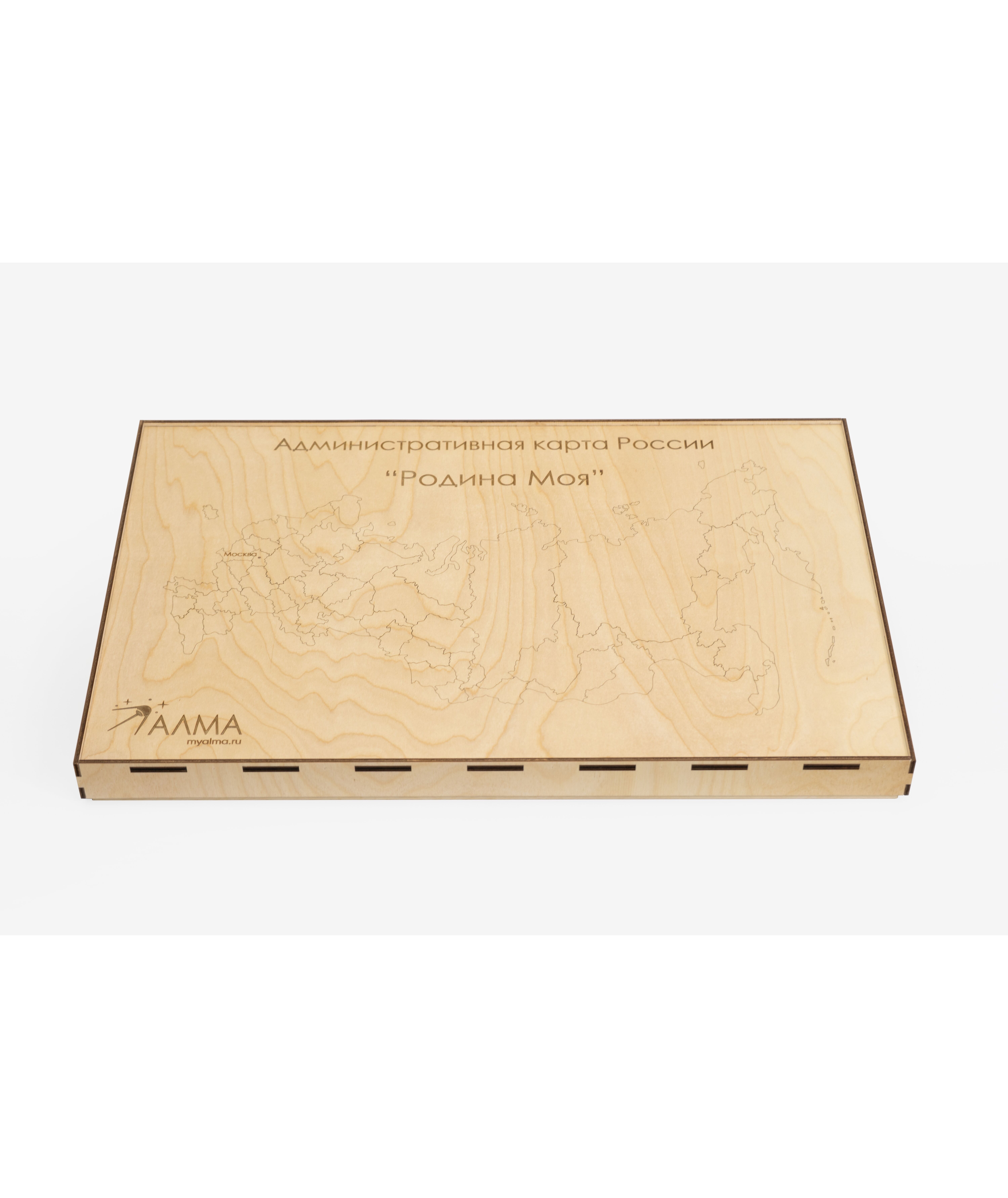 Описание Пазл из дерева - Административная карта России "Родина Моя" 522х308х10мм [А421]