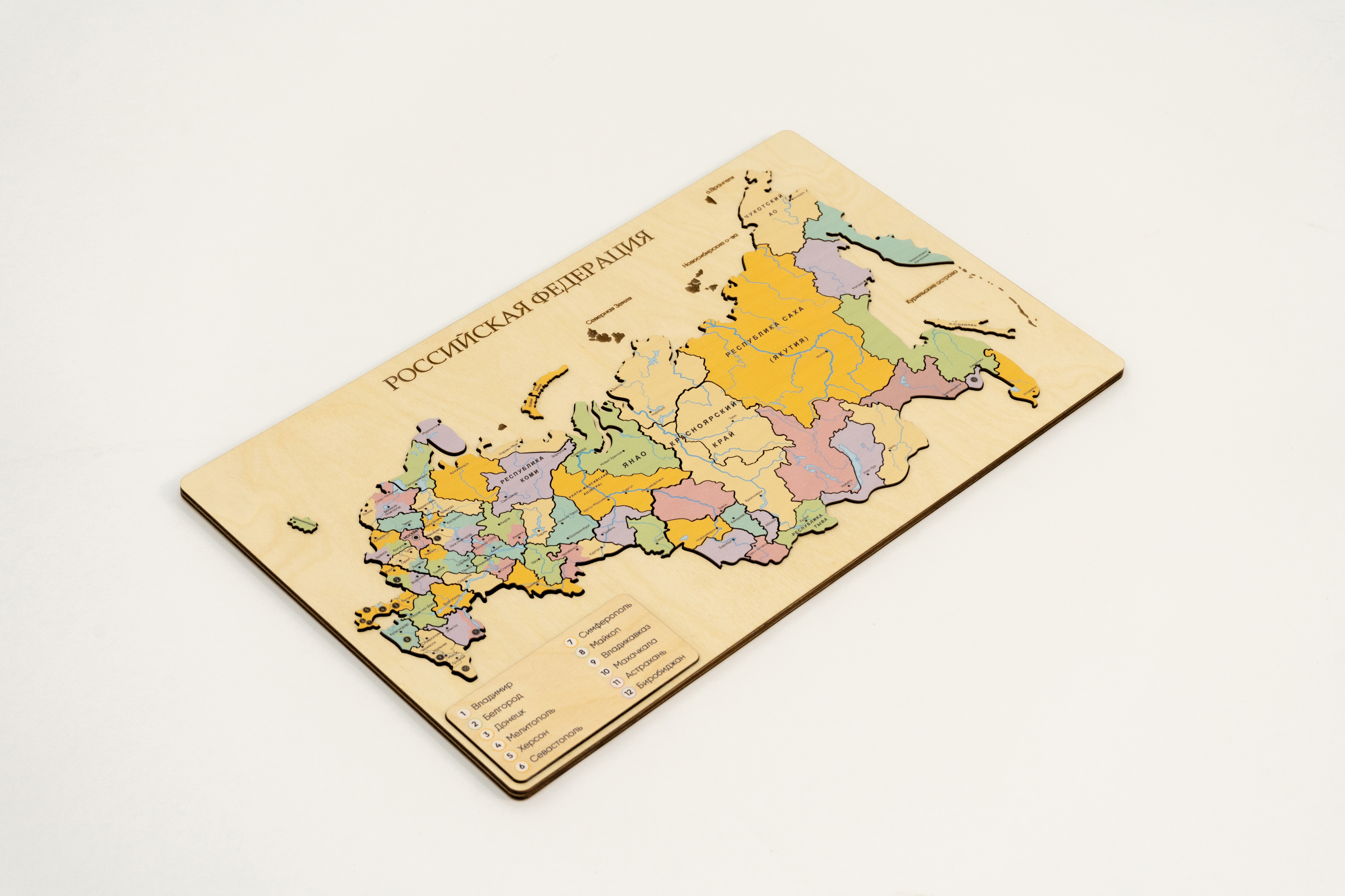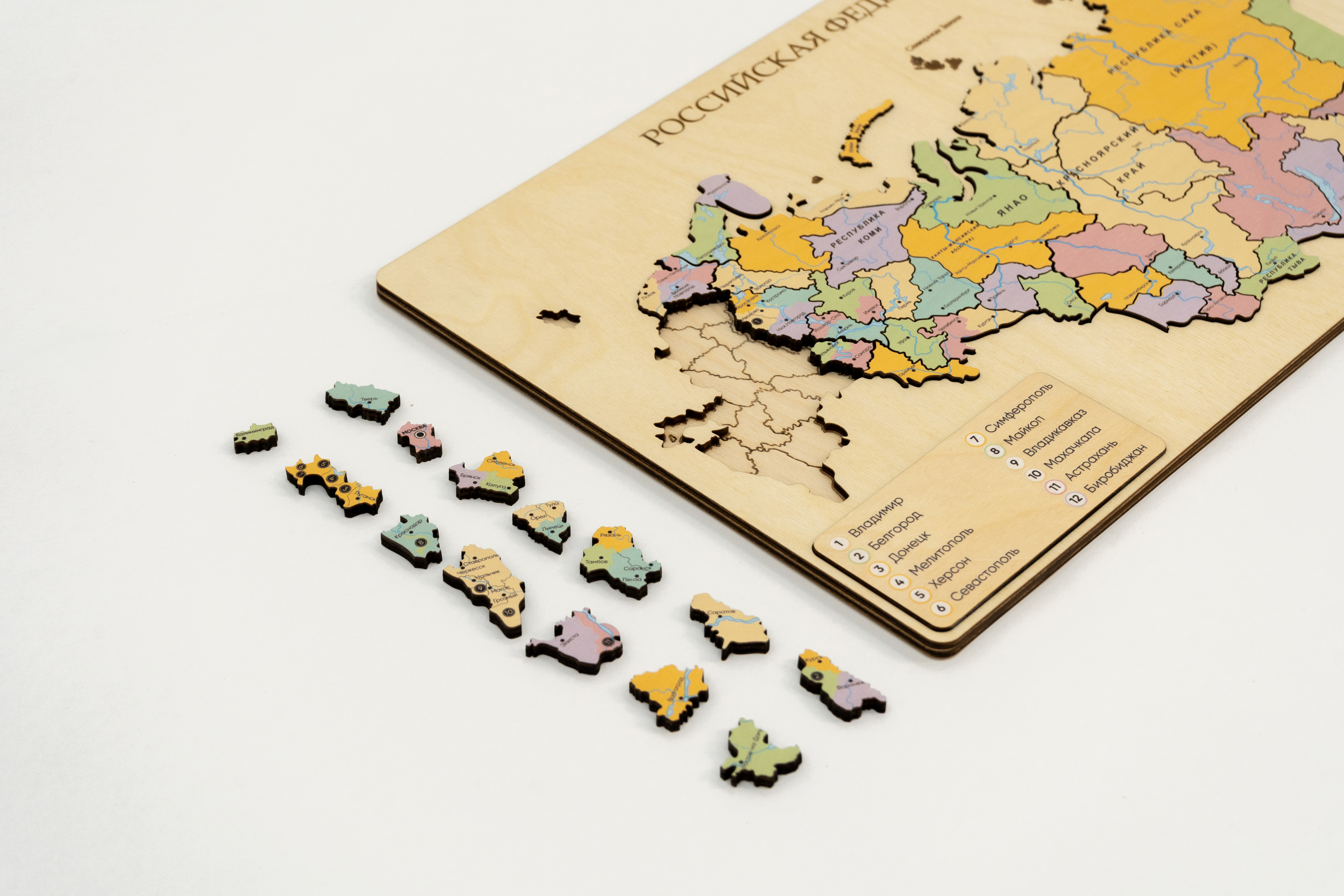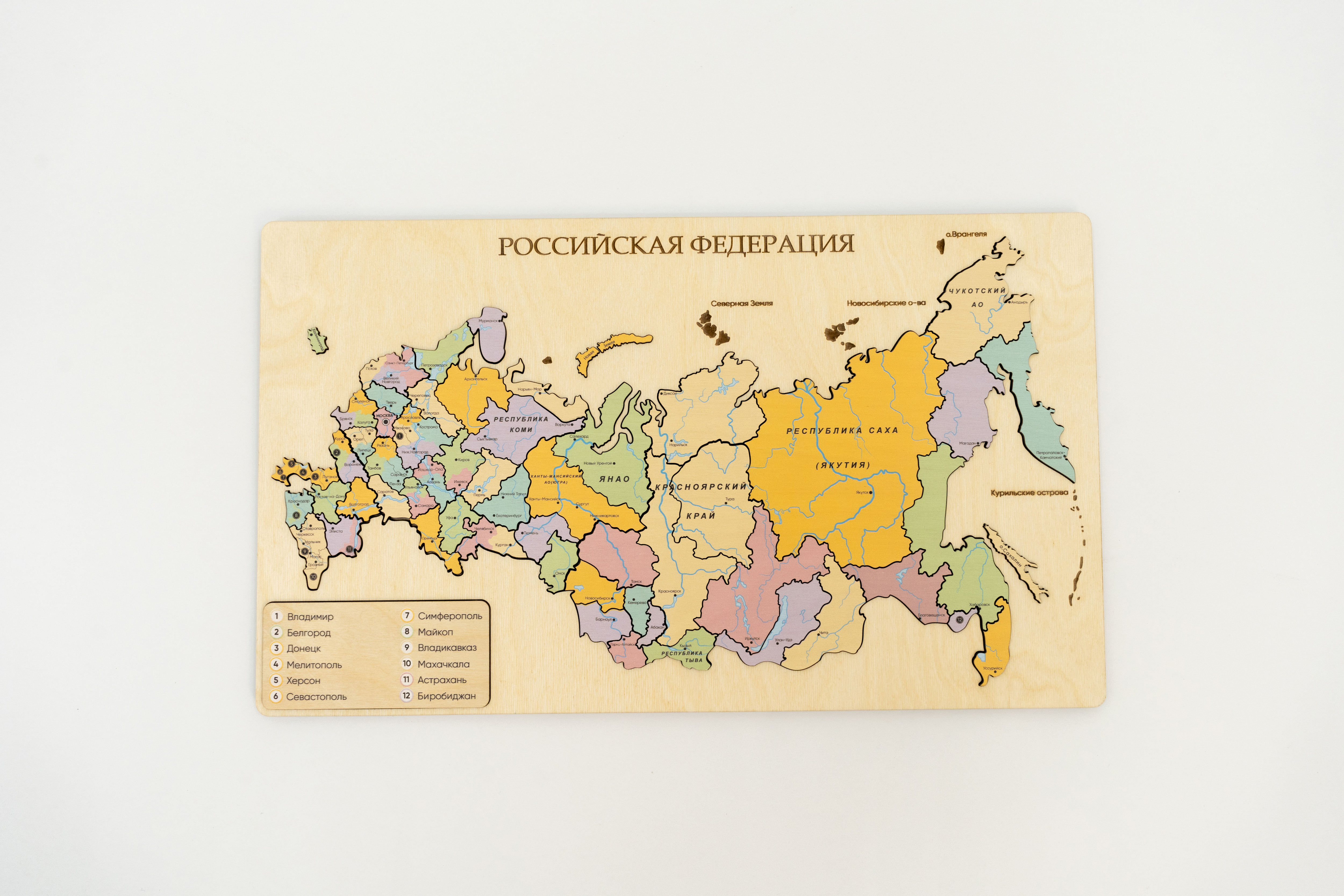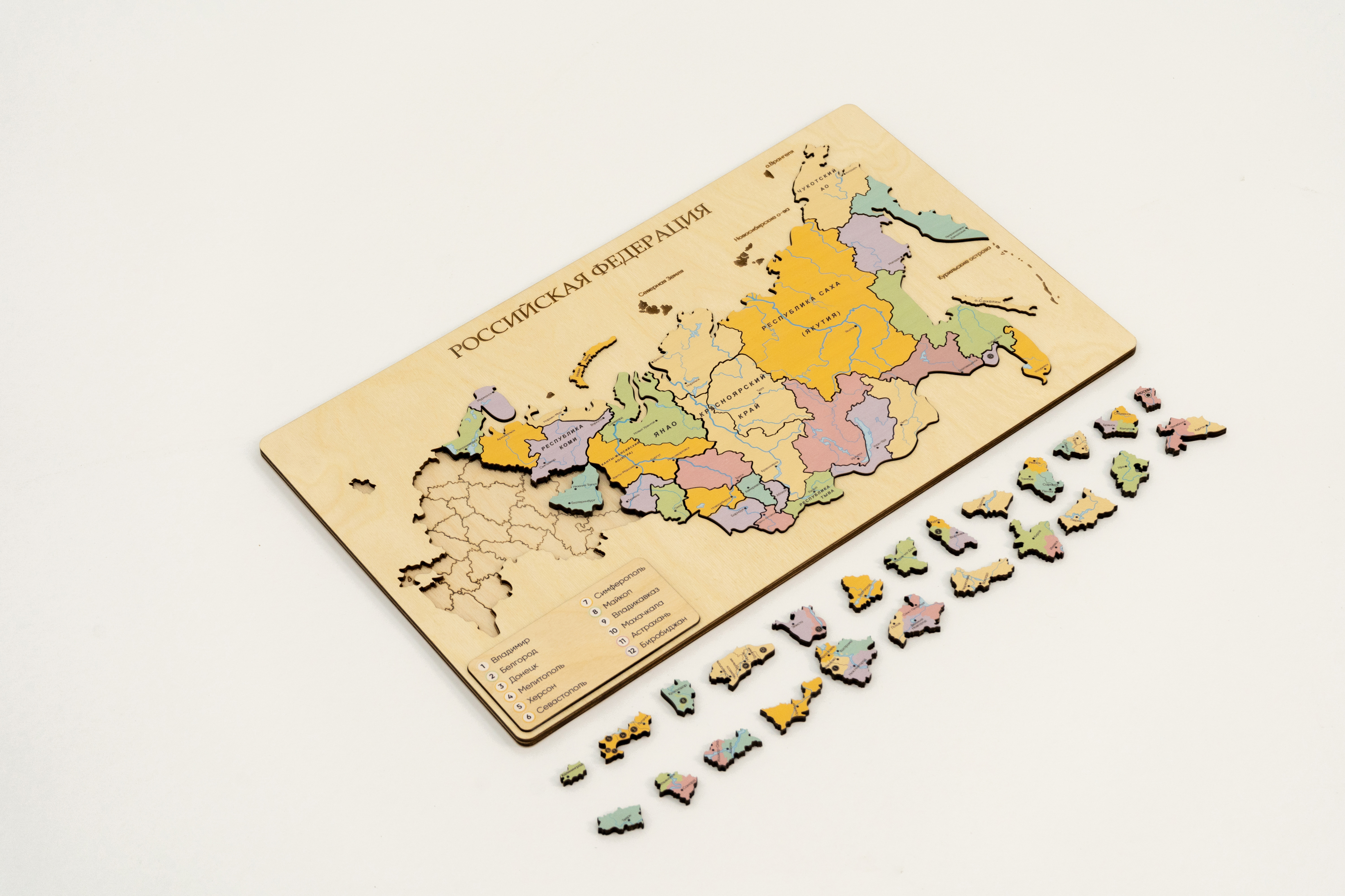 Карта-пазл административно-территориального деления России. Играя с картой и складывая фрагменты пазла, дети запоминают важную информацию про территориальное устройство своей страны, что делает карту-пазл незаменимым ресурсом для географических и патриотических уроков. Образовательная карта-пазл идеально подходит для использования в школьных классах и других образовательных учреждениях.