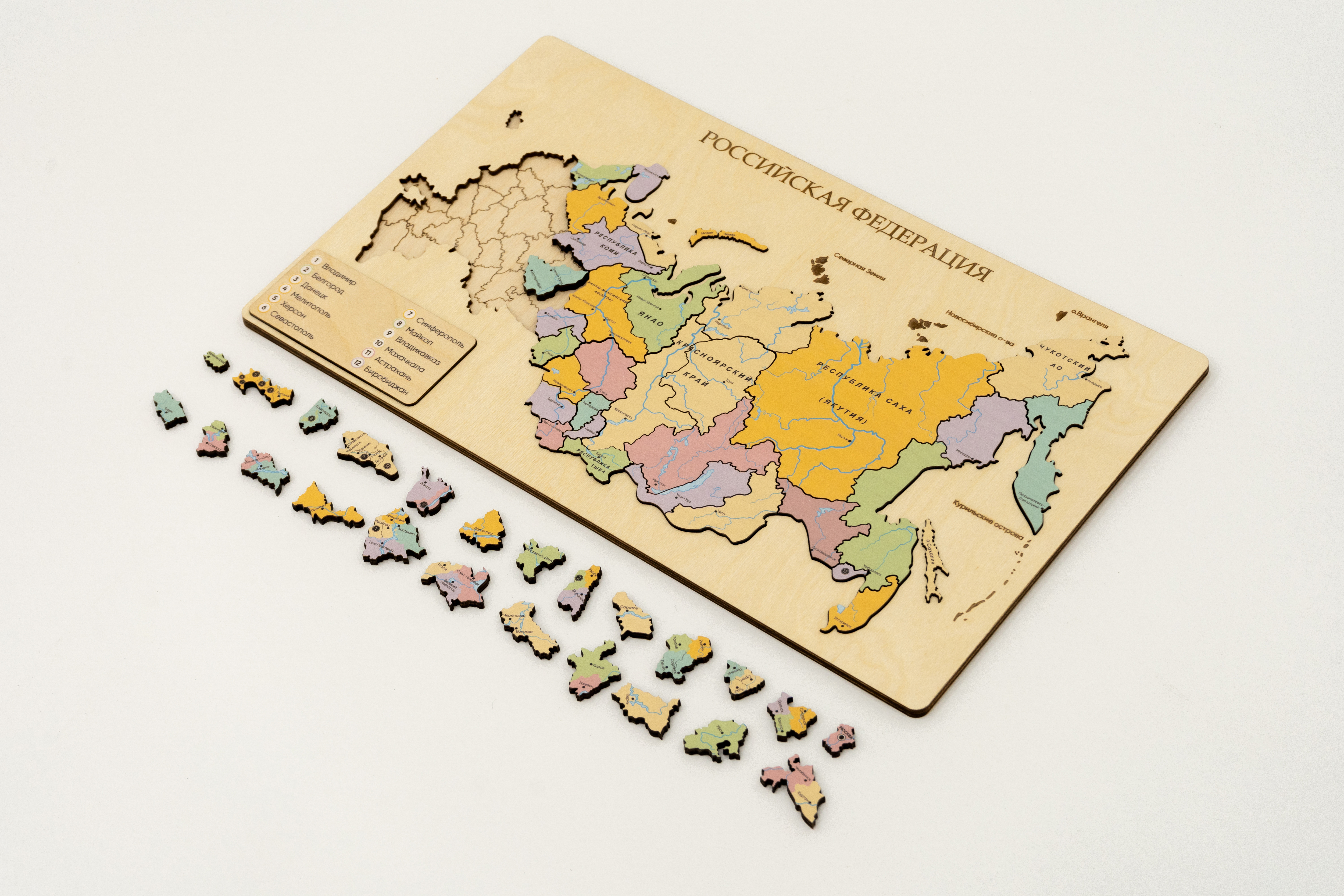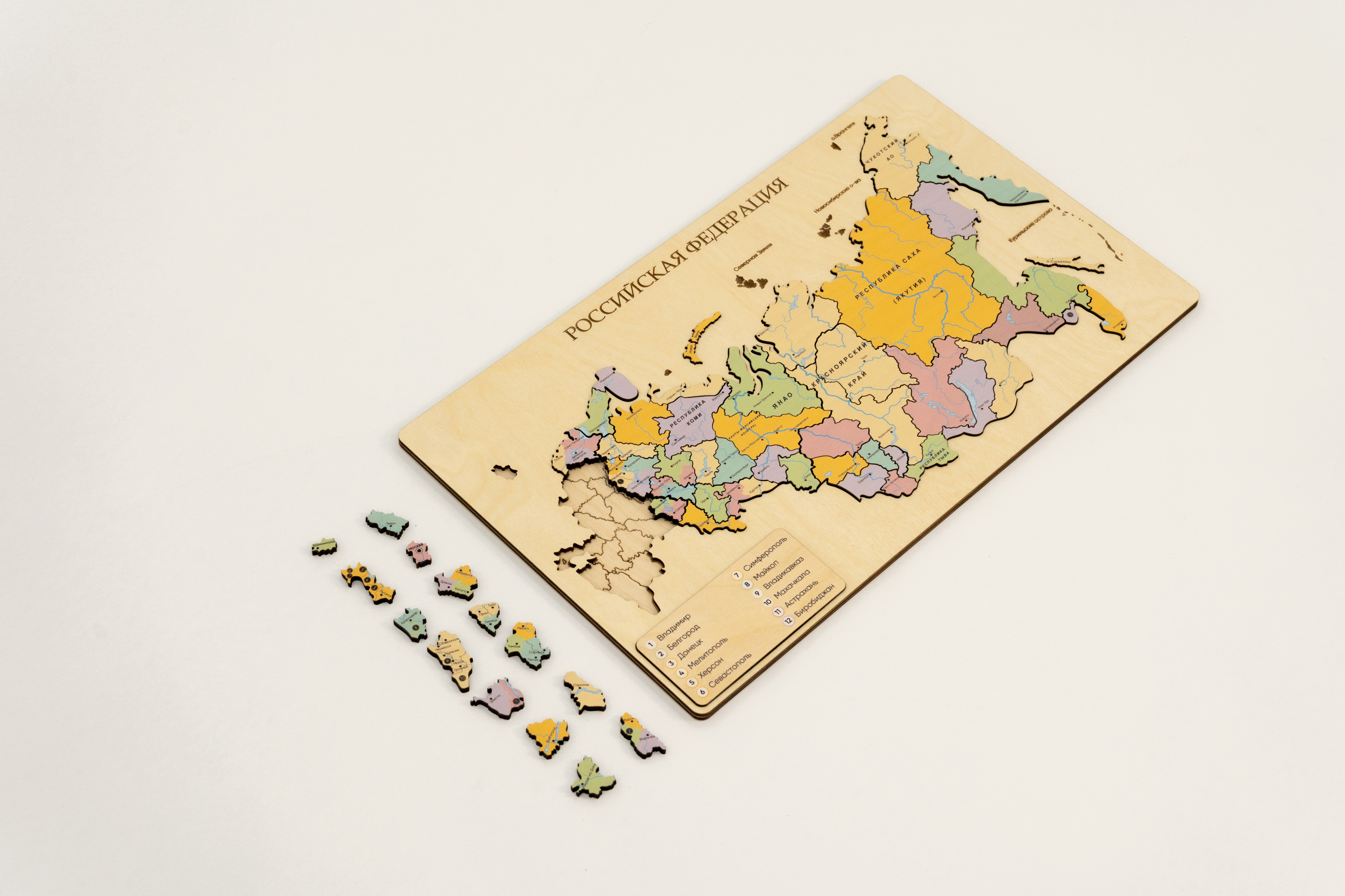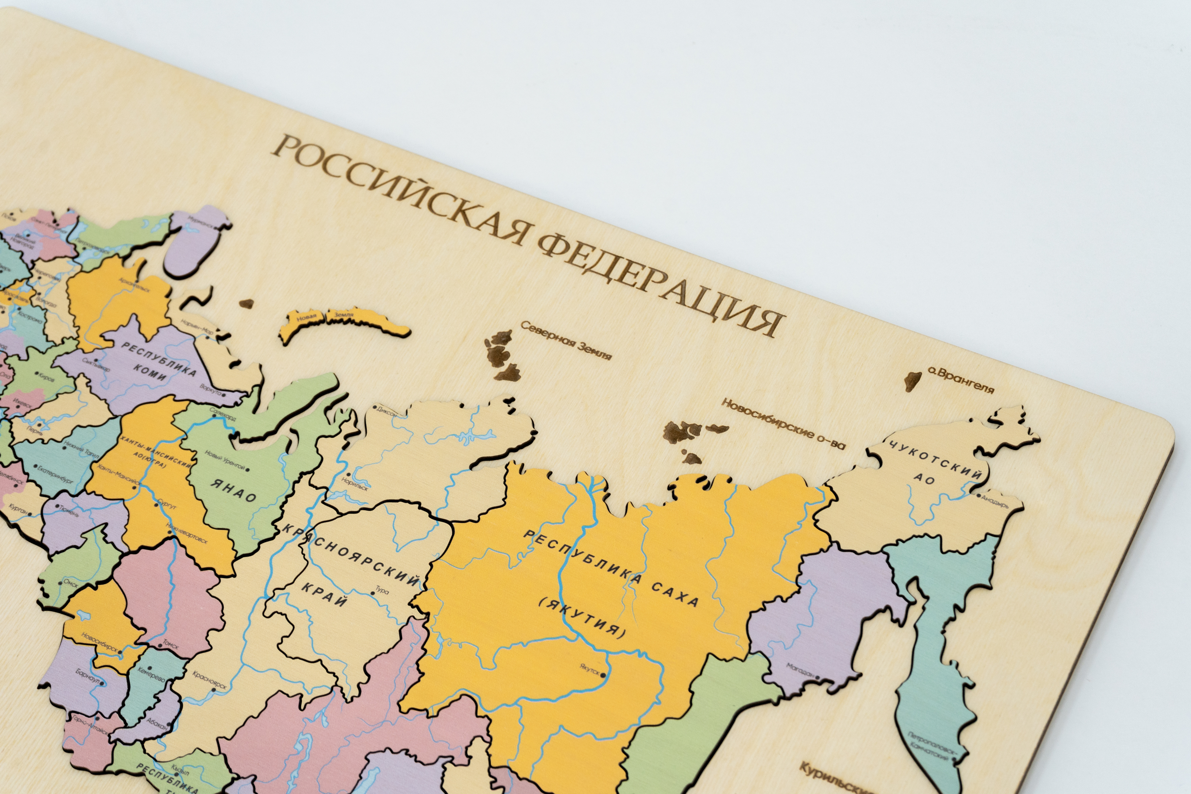 Карта-пазл административно-территориального деления России. Играя с картой и складывая фрагменты пазла, дети запоминают важную информацию про территориальное устройство своей страны, что делает карту-пазл незаменимым ресурсом для географических и патриотических уроков. Образовательная карта-пазл идеально подходит для использования в школьных классах и других образовательных учреждениях.