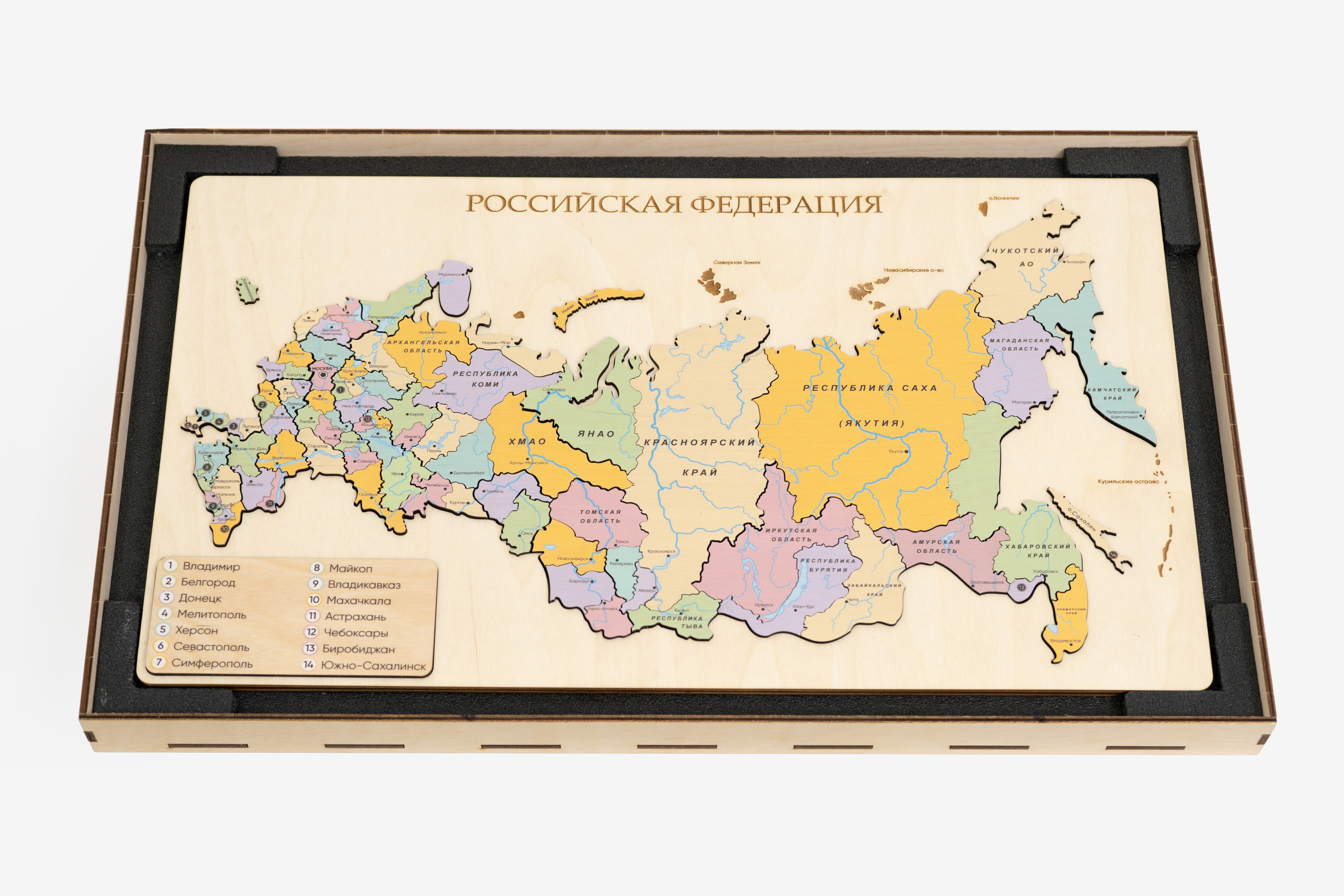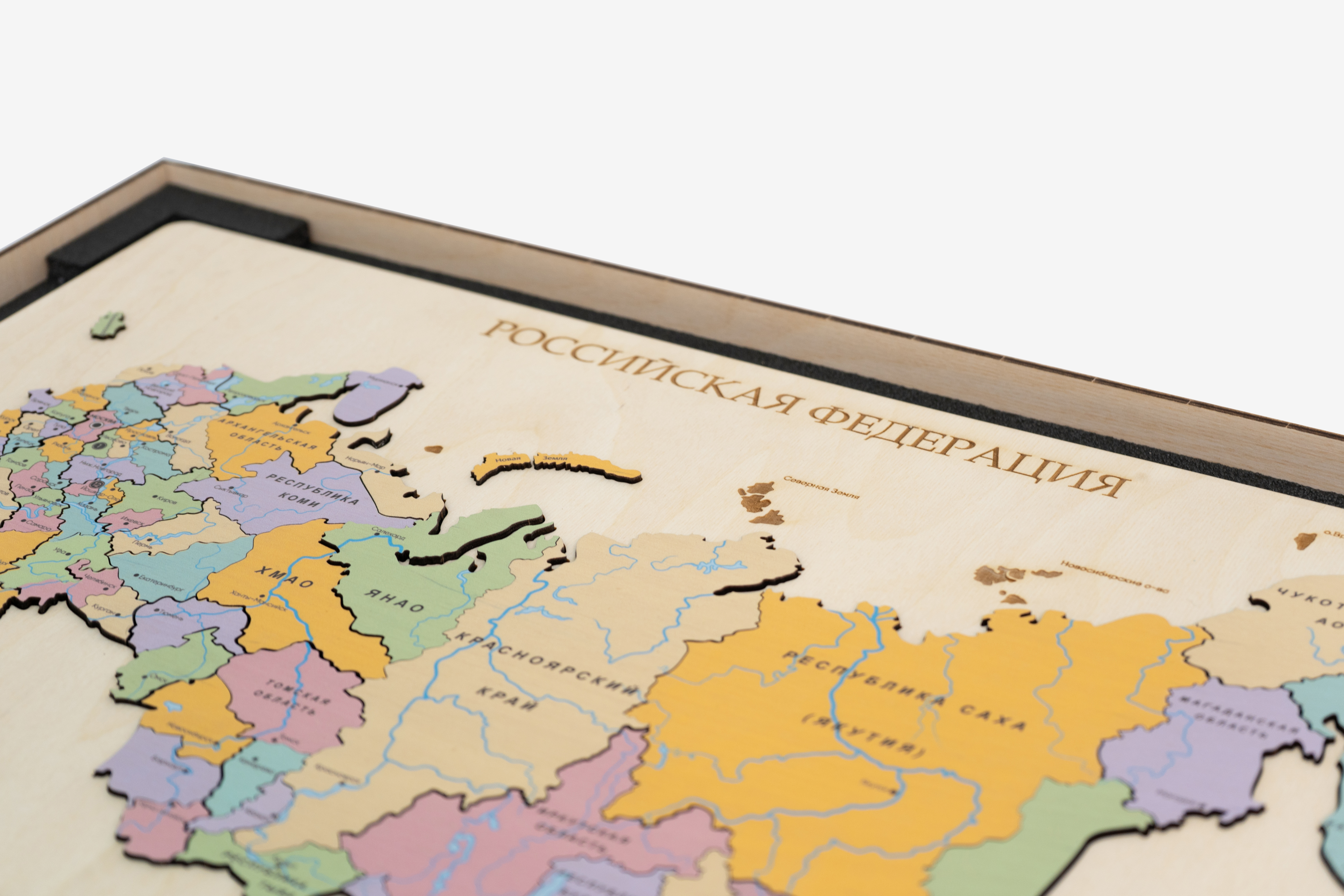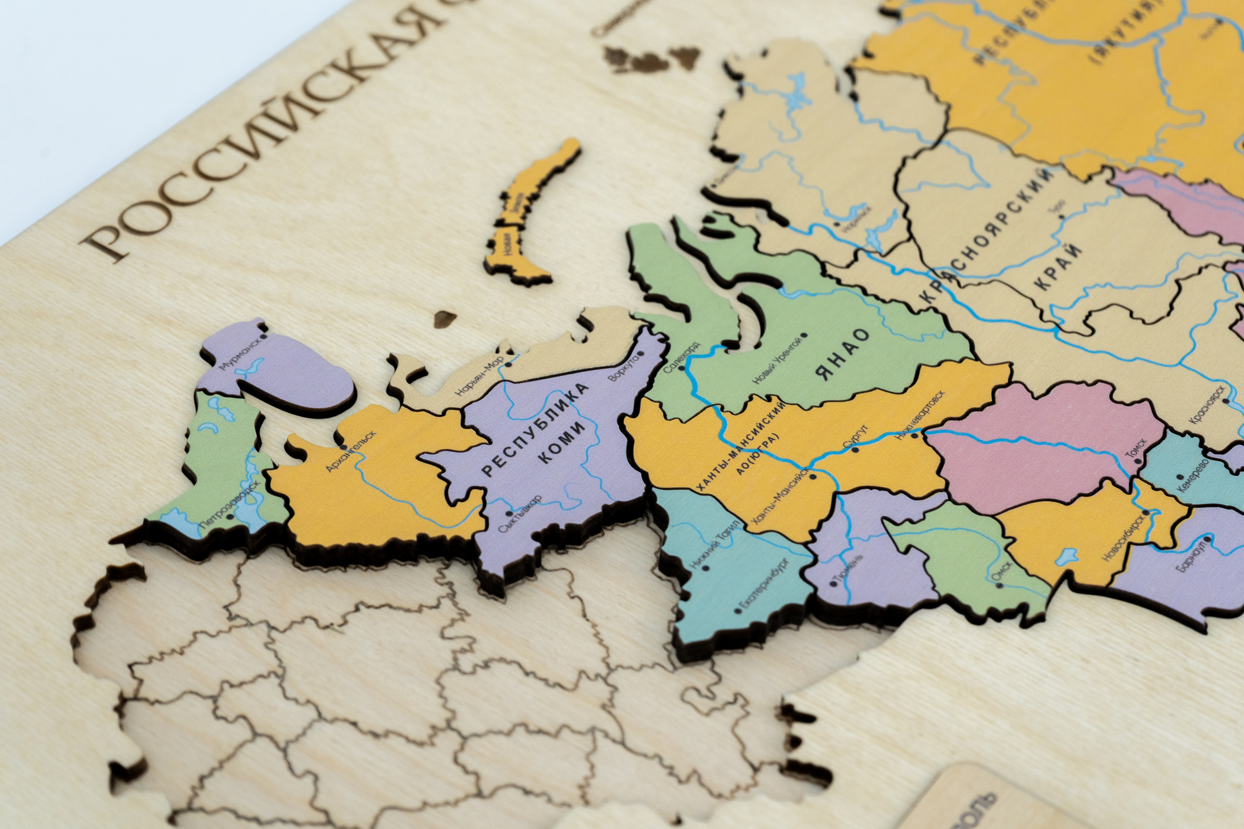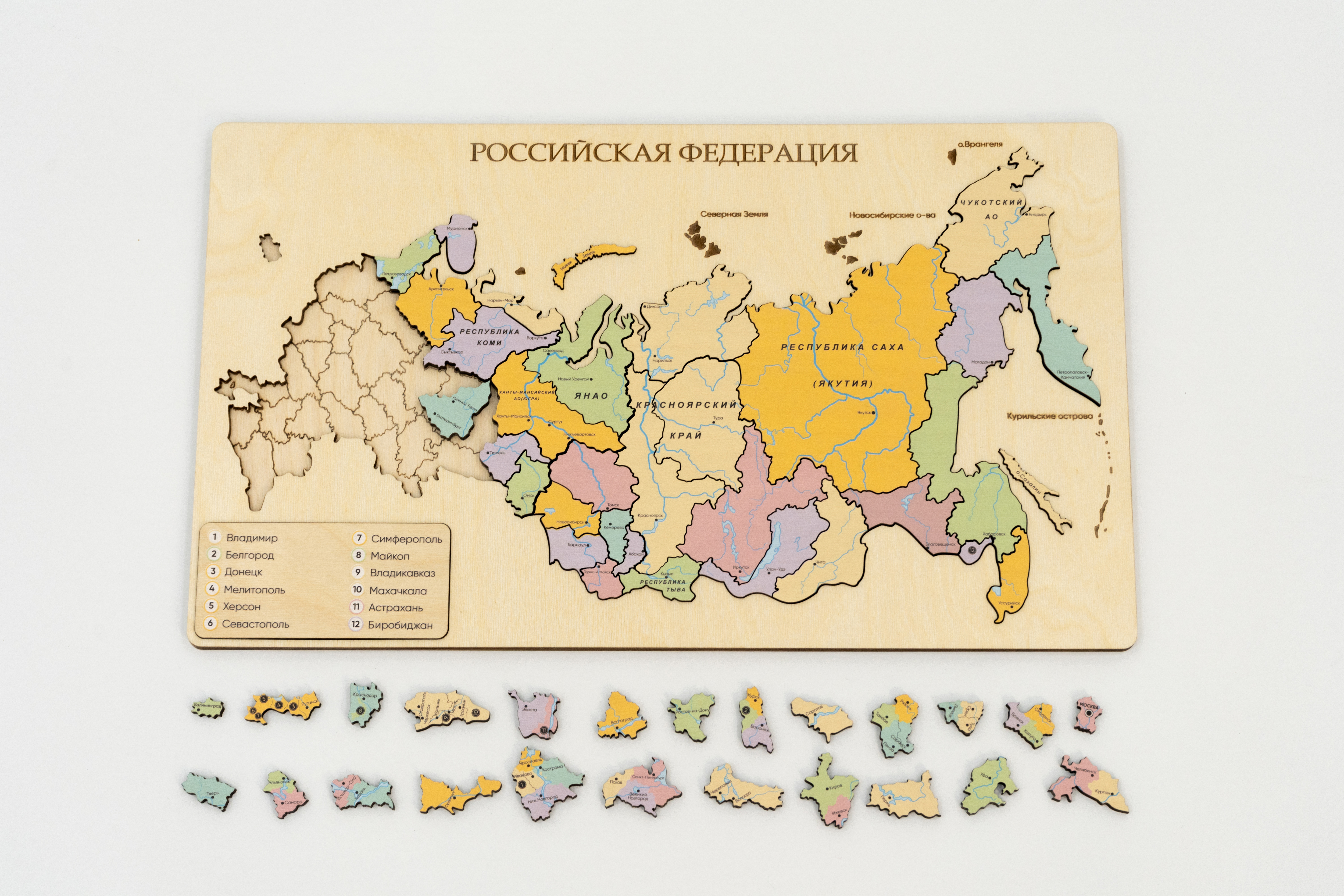 Карта-пазл административно-территориального деления России. Играя с картой и складывая фрагменты пазла, дети запоминают важную информацию про территориальное устройство своей страны, что делает карту-пазл незаменимым ресурсом для географических и патриотических уроков. Образовательная карта-пазл идеально подходит для использования в школьных классах и других образовательных учреждениях.