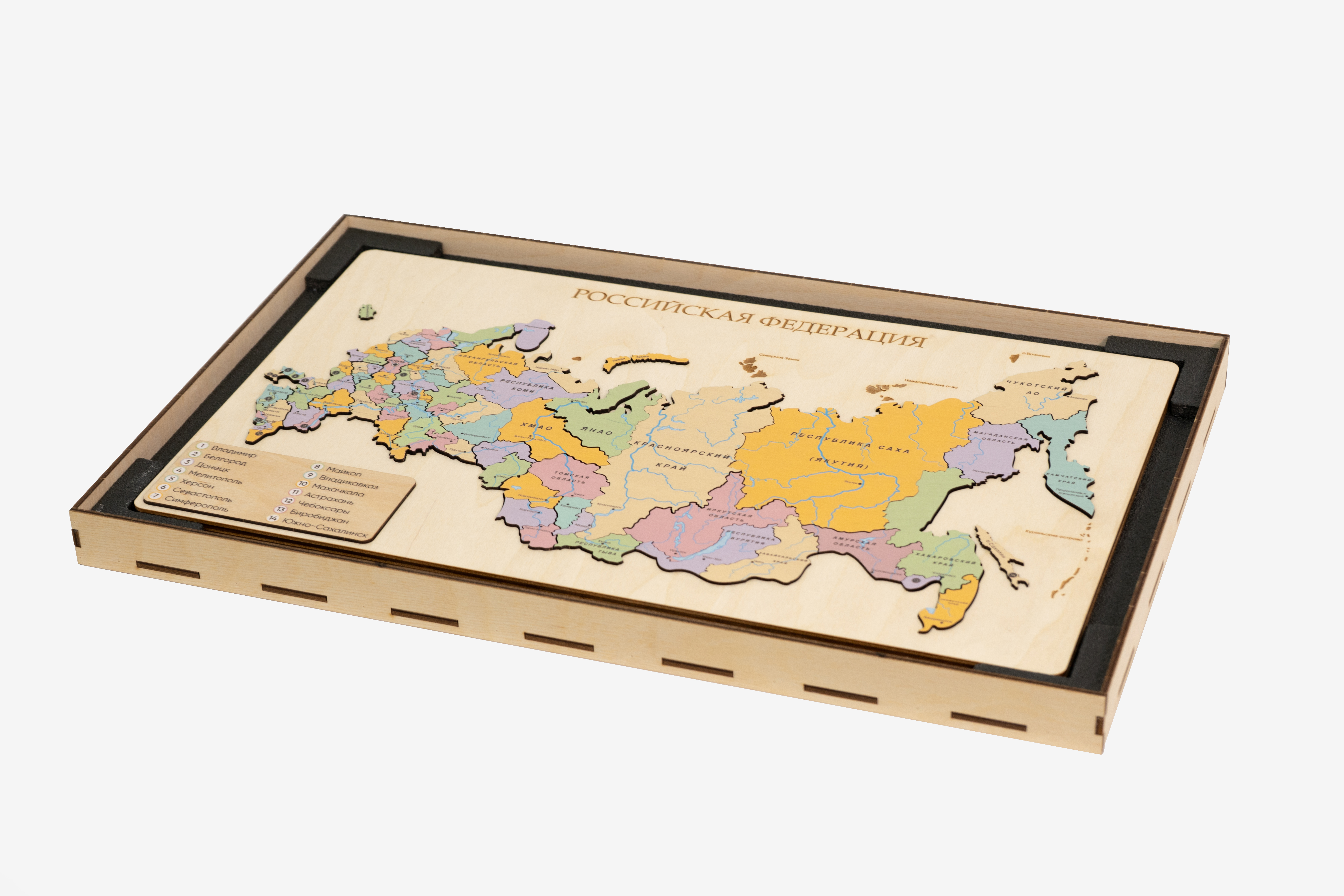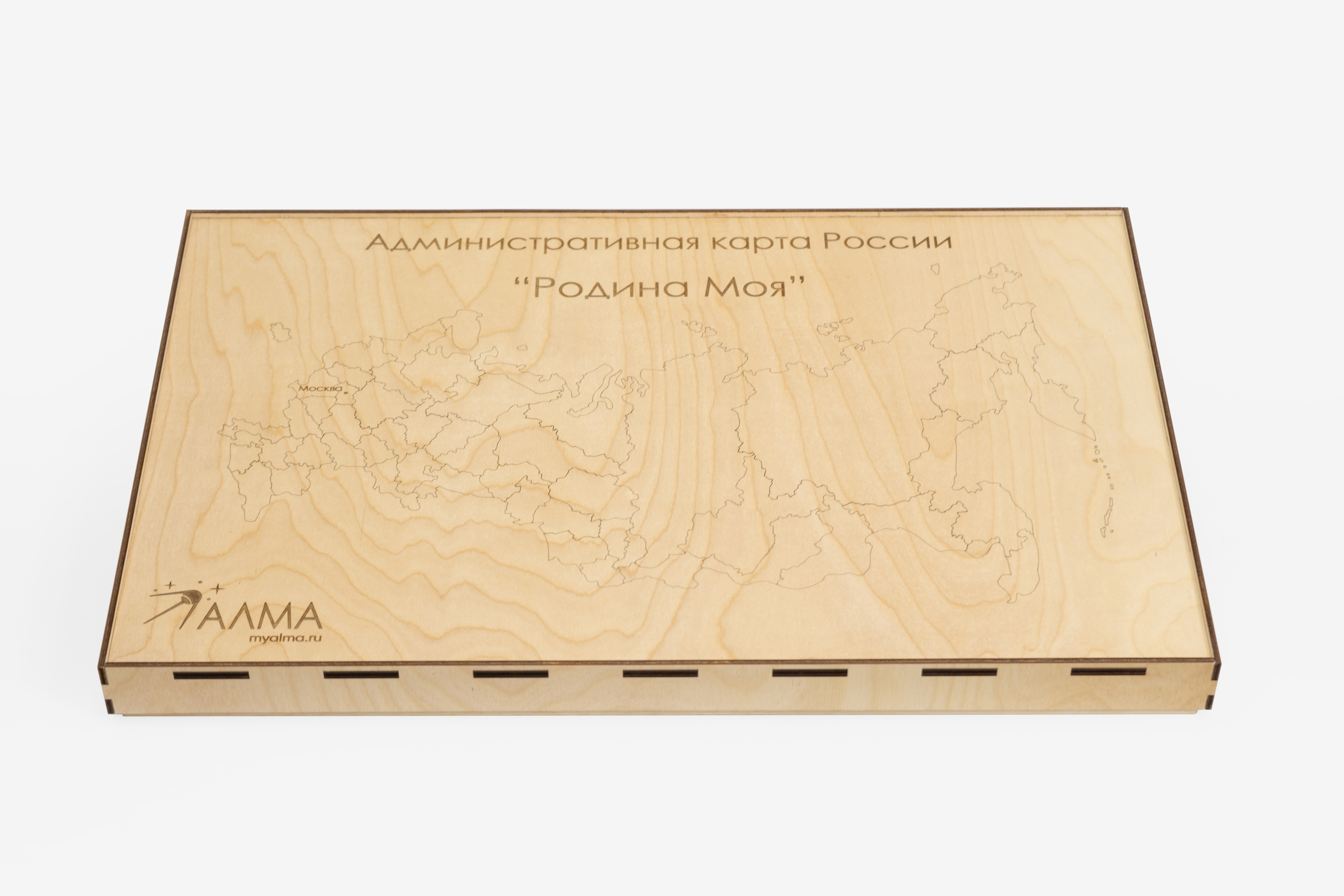 Описание Пазл из дерева - Административная карта России "Родина Моя" 522х308х10мм [А421]