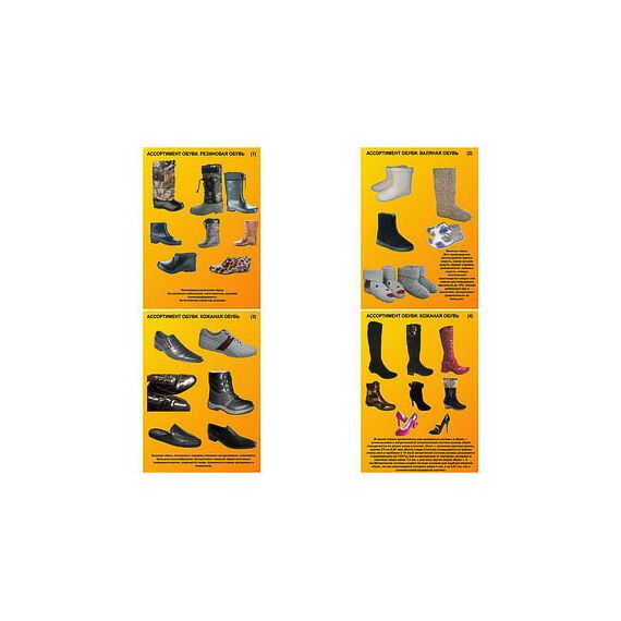 Описание Плакаты ПРОФТЕХ "Ассортимент обуви" (4 пл, винил, 70х100)