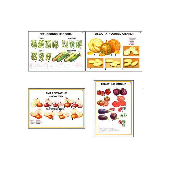Описание Плакаты ПРОФТЕХ "Ассортимент овощных культур" (12 пл, винил, 70х100)