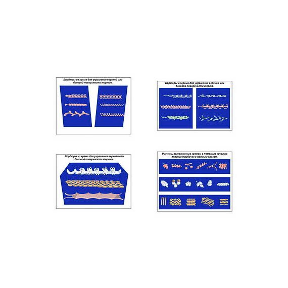 Описание Плакаты ПРОФТЕХ "Бордюры из крема для украшения поверхностей тортов" (4 пл, винил, 70х100)