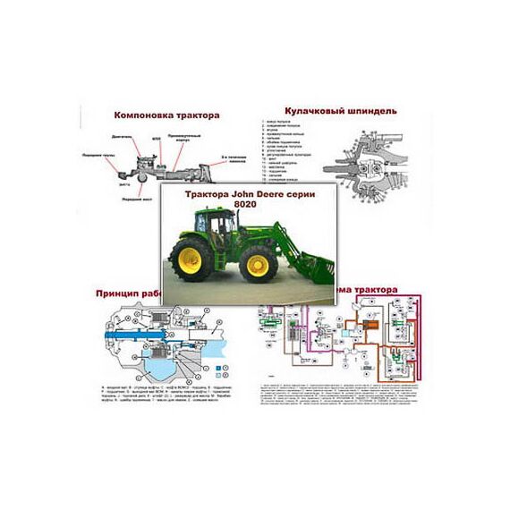 Плакаты полноцветные, выполнены на качественном долговечном виниловом материале. Размер 70х100 см. 1. Трактора "John Deere" серии 8020 2. Общие технические данные 3. Блоки управления 4. Компоновка трактора 5. Двигатель 6. Двигатель. Часть 2 7. Двигатель. Часть 3 8. Система охлаждения 9. Двигатель. Часть 4 10. Система очистки воздуха. Предварительная ступень 11. Топливная система 12. Топливный насос высокого давления 13. Рейка высокого давления 14. Демпферы потока 15. Предохранительный клапан 16. Новая топливная система 17. Положение форсунок 18. Форсунка с электронным управлением 19. Работа форсунки с электронным управлением 20. Небольшой обзор электронной системы управления 21. Увеличение крутящего момента 22. Кулачковый шпиндель 23. Дифференциал 24. Приводы насосов 25. Задний мост 26. Общий вид. Задний мост 27. Конечные передачи 28. Принцип работы муфты ВОМ 29. Гидросистема трактора 30. 3-х точечная навеска