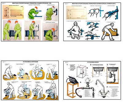 Описание Плакаты ПРОФТЕХ "Изготовление и монтаж санитарно-технических устройств" (20 пл, винил, 70х100)