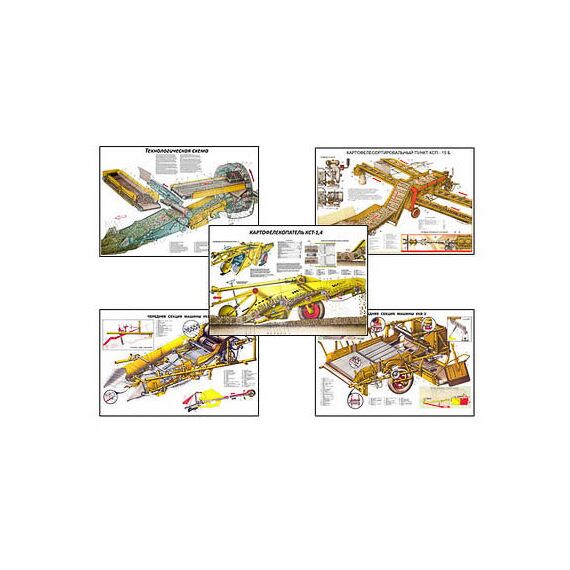 Описание Плакаты ПРОФТЕХ "Машины для уборки овощей" (15 пл, винил, 70х100)