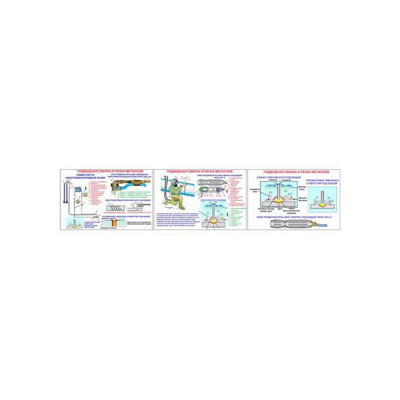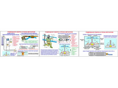 Описание Плакаты ПРОФТЕХ "Подводная сварка и резка металлов" (3 пл, винил, 70х100)