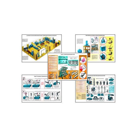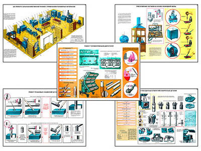 Описание Плакаты ПРОФТЕХ "Применение полимерных материалов при ремонте сельхозтехники" (7 пл, винил, 70х100)