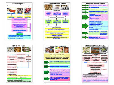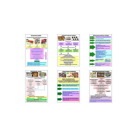 Наличие товара Плакаты ПРОФТЕХ "Технологические схемы приготовления рыбы" (6 пл, винил, 70х100)