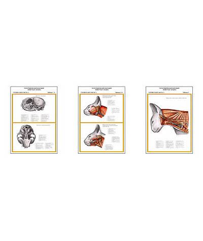 Плакаты ПРОФТЕХ "Топограф. анатомия. Кошка. Голова и шея" (3 пл, винил, 70х100)