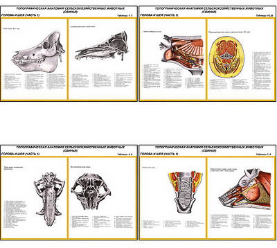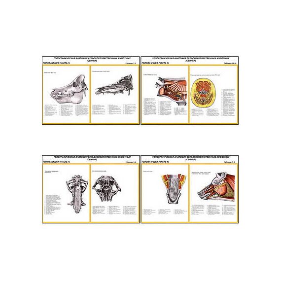 Плакаты ПРОФТЕХ "Топограф. анатомия. Свинья. Голова и шея" (11 пл, винил, 70х100)