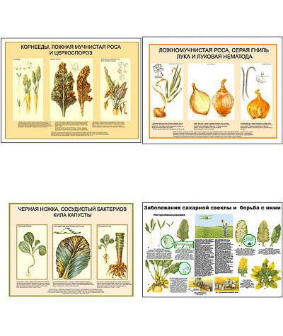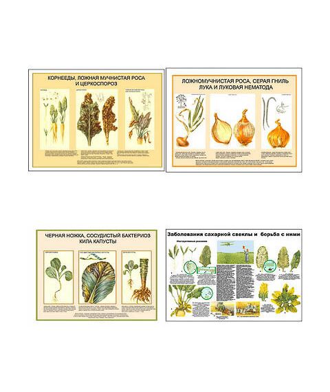 Описание Плакаты ПРОФТЕХ "Вредит., болезни овощ. и бахчевых культ., меры борьбы с ними" (6 пл, винил, 70х100)