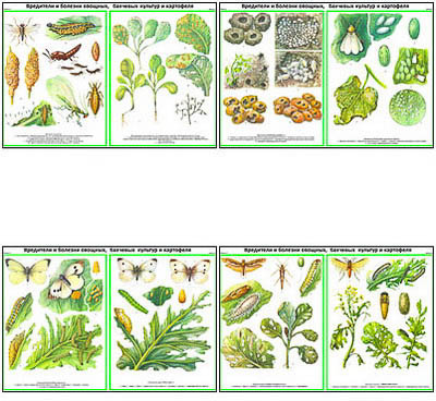 Описание Плакаты ПРОФТЕХ "Вредит., болезни овощн., бахчев., картоф. культ." Часть 1 (22 пл, винил, 70х100)
