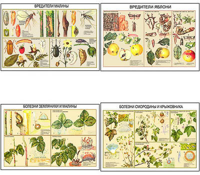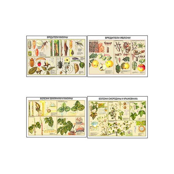 Описание Плакаты ПРОФТЕХ "Вредители и болезни плодово-ягодных культур" (11 пл, винил, 70х100)