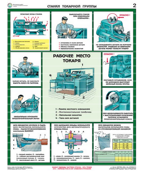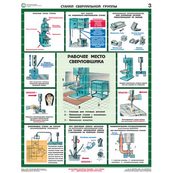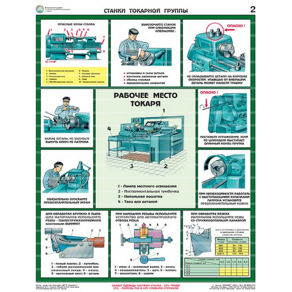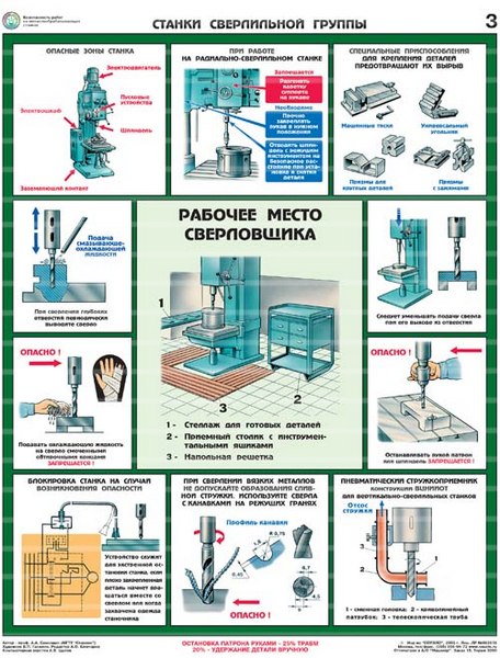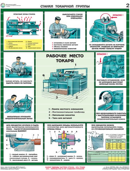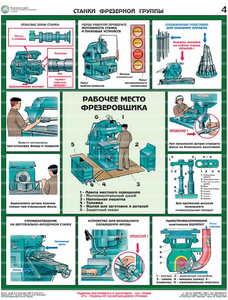 Показаны приемы безопасной работы на станках токарной, сверлильной, фрезерной, заточной и шлифовальной групп, общие меры безопасности при работе на металлообрабатывающих станках.