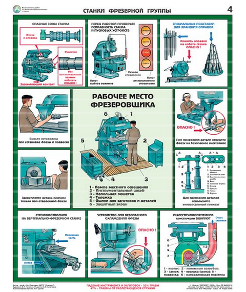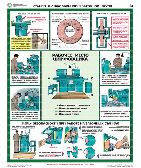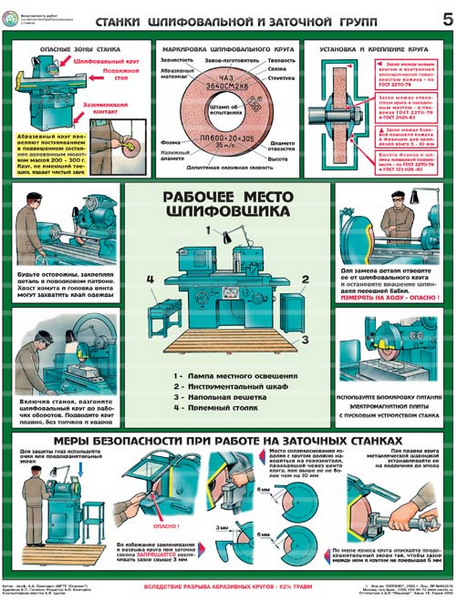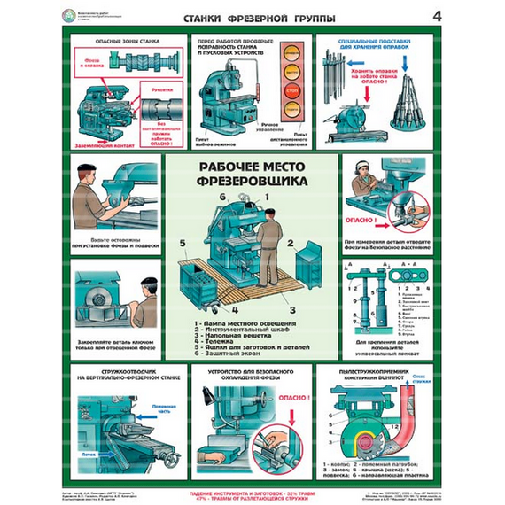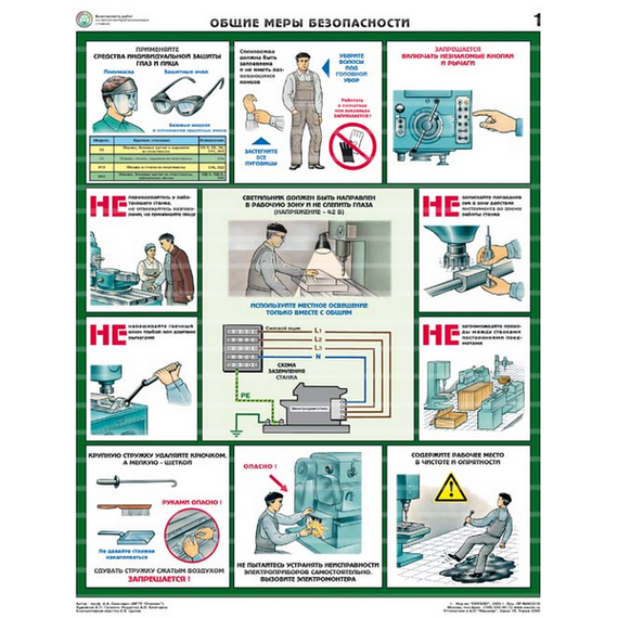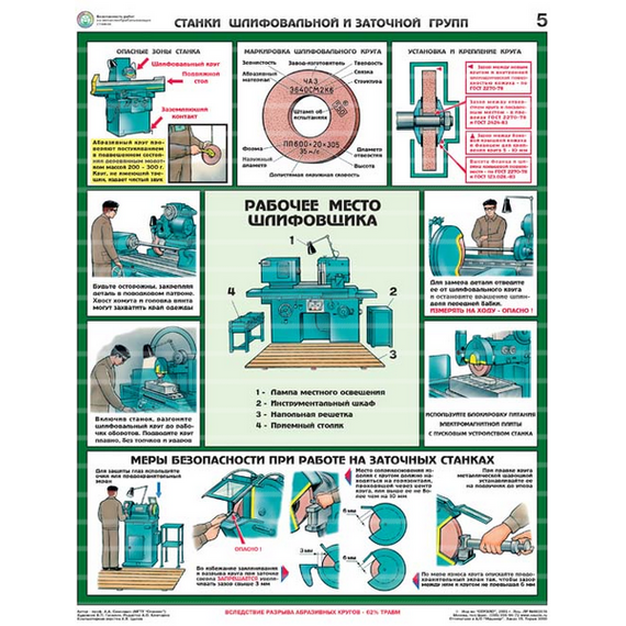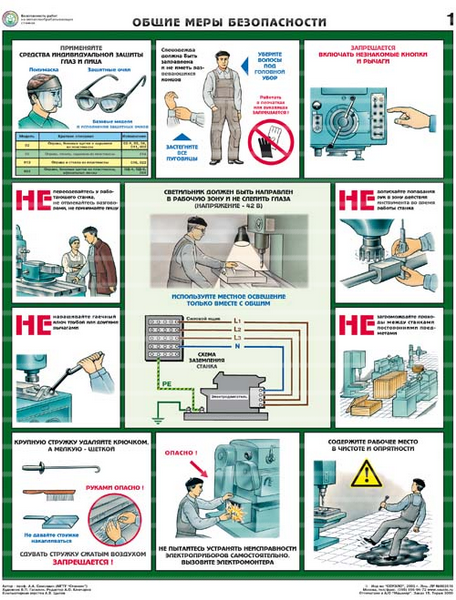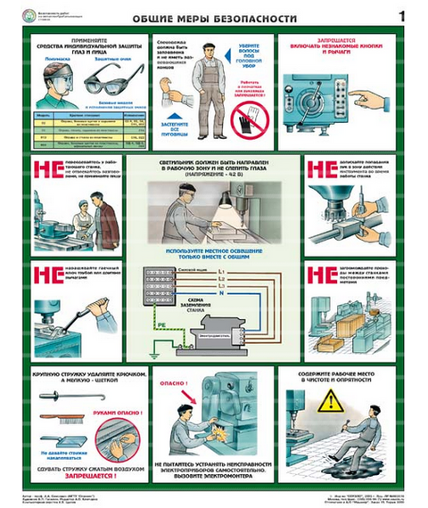 Описание Плакаты "Безопасность работ на металлообрабатывающих станках" ламинир. (5 листов, формат 465*610 мм)