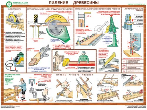 Описание Плакаты "Безопасность труда при деревообработке" (5 листов, размер 450х600)
