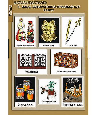 Описание Таблицы демонстрационные "Декоративно-приклад. творчество. Создание изделий из древесины и металлов"