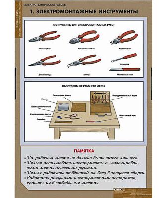 Электромонтажные инструменты. Оконцевание проводов. Соединение (сращивание) и ответвление проводов. Пайка. Приемы пайки. Источники и приемники электрической энергии. Электрическая цепь и её схемы. Разветвленная электрическая сеть. Сборка выключателя.Электрическая лампа. Пробник. Электромагнит. Электромагнитное реле. Правила поведения и организация труда в мастерских.