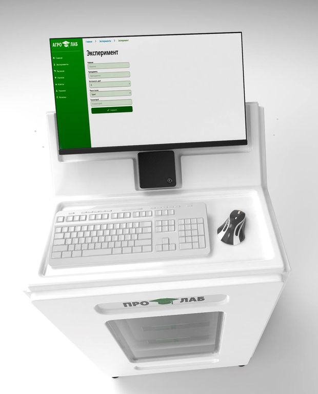 Лаборатория агробиотехнологий АгроЛаб® МОДУЛЬ создана при непосредственном участии и научно-методическом сопровождении кафедры физиологии и биохимии СПБГУ, кафедры генетики и биотехнологии СПБГУ, Ботанического института Российской академии наук. Патенты РФ: №2801952, №2812860, №2800126. АгроЛаб® МОДУЛЬ – это компактная лаборатория агробиотехнологий для учебных заведений, оснащённая системой «Искусственное Солнце®» с регулируемым спектром света (УФ/ИК/видимый диапазон), модулем микроклимата (контроль температуры, влажности, силы ветра), 20 программируемыми линиями капельного полива с возможностью изменения химического состава воды, а также специализированным ПО для автоматизации экспериментов, ведения электронного журнала и создания фото/видеоотчётов. Компактная климатическая камера для размещения в учебной аудитории.