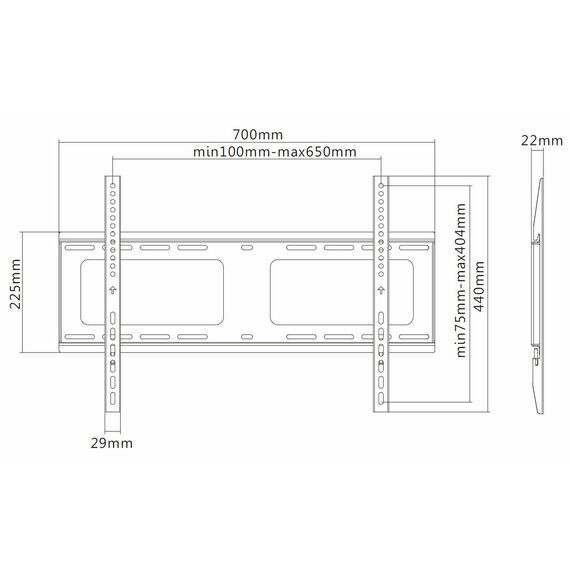 Настенный фиксированный кронштейн для ТВ Exell EXi-H1264-F 37"-80", VESA 600x400 мм, до 120 кг, 22 мм от стены, черный