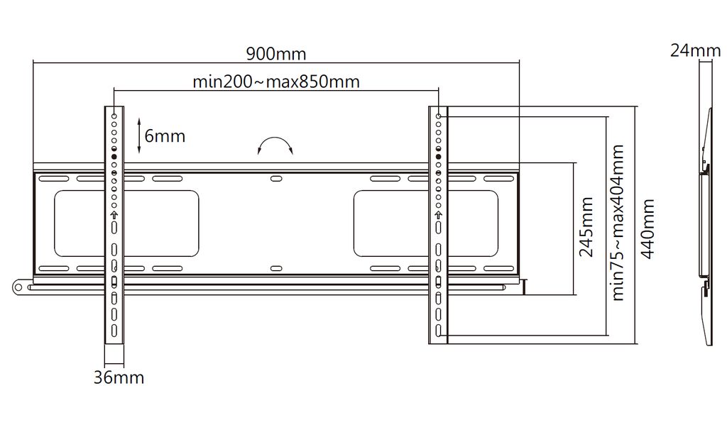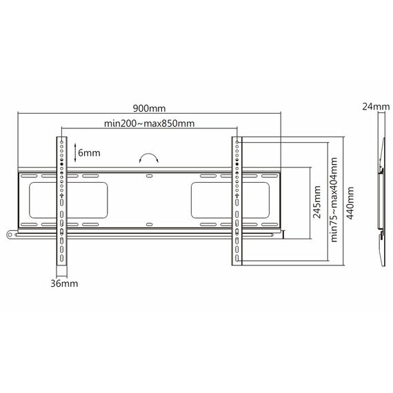 Настенный фиксированный кронштейн для ТВ Exell EXi-H1284-AF 43"-90", VESA 800x400 мм, до 120 кг, 24 мм от стены, черный