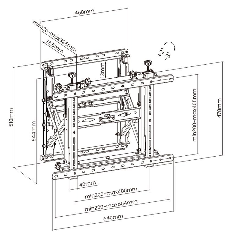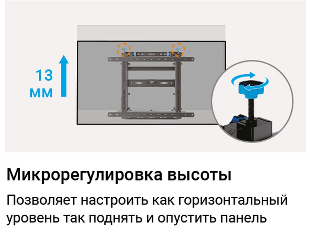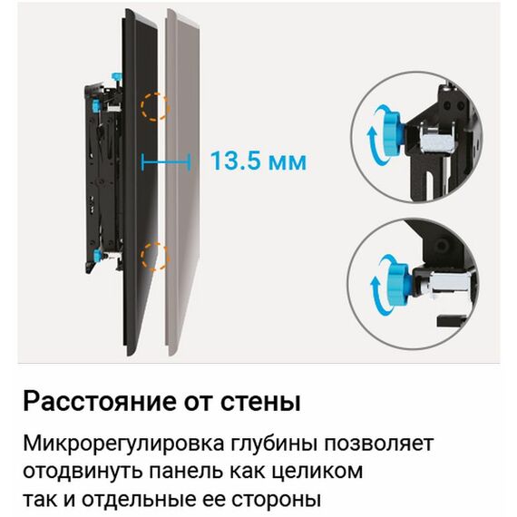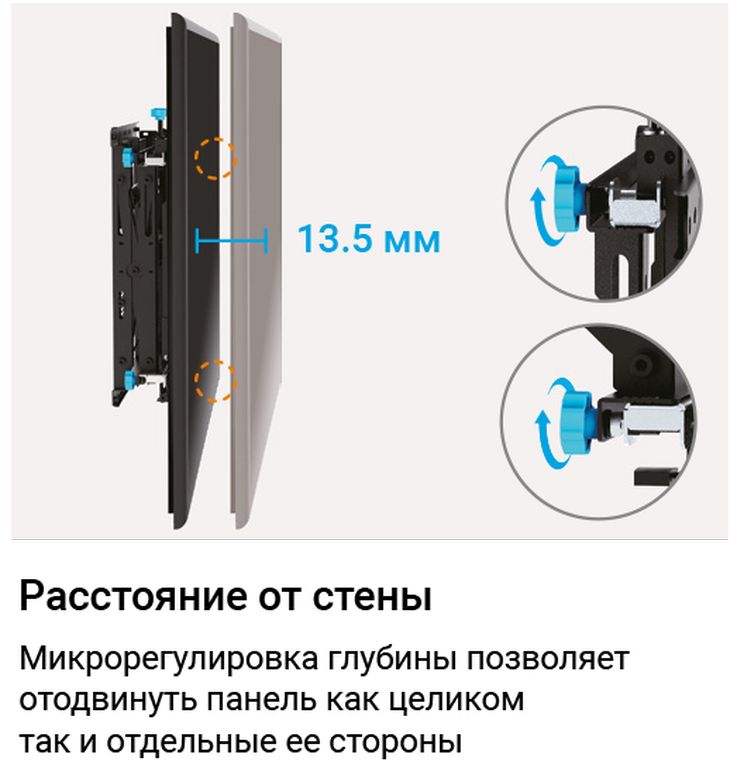 - Усилие для выдвижения крепления регулируется в соответствии с массой дисплея, благодаря чему панель выдвигается легким нажатием на переднюю плоскость