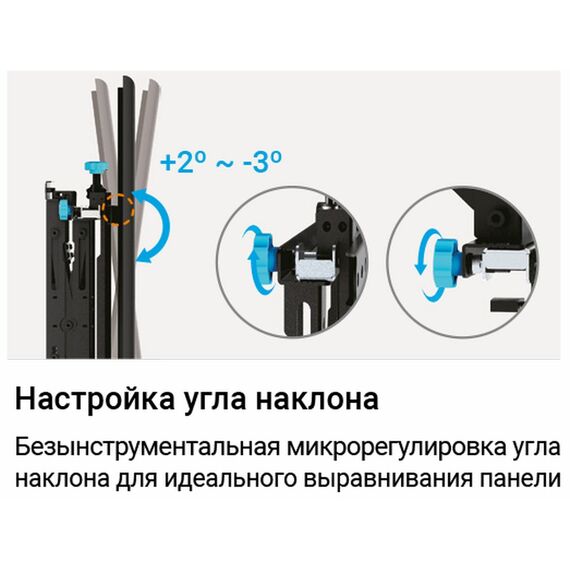 Кронштейн для видеостен Exell EXi-V764 37-70, VESA макс. 600x400 мм, до 70 кг, микрорегулировки, quick release, сервисное положение +10°. Регулировки: вынос, высота, наклон, поворот и уровень